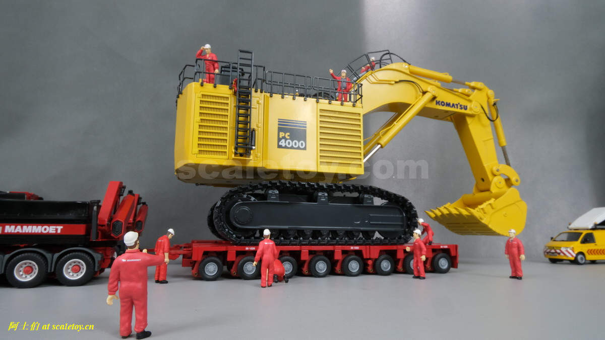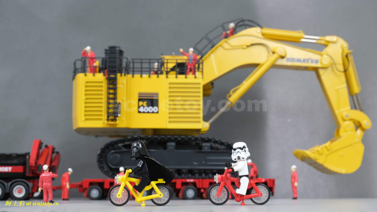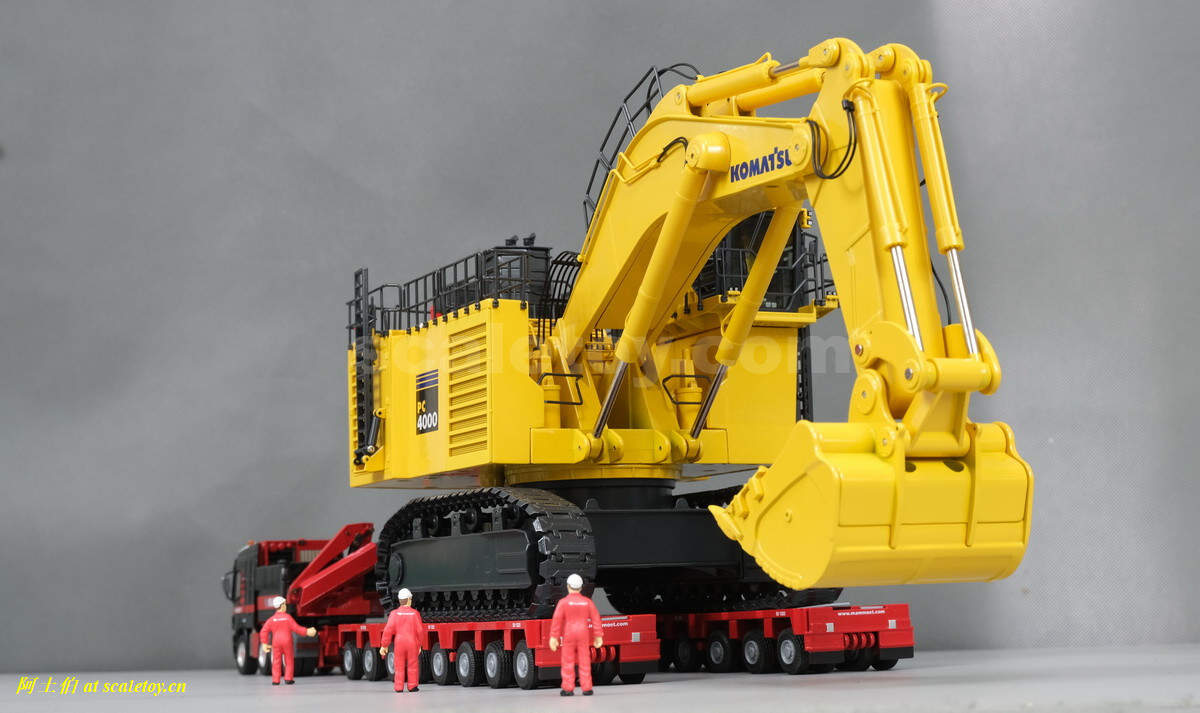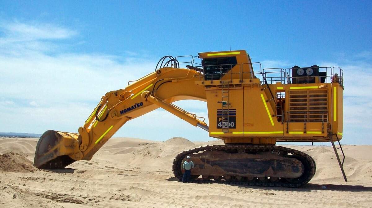 KOMATSU小松 PC4000矿用挖掘机,工作重量在400吨上下,发动机功率1400千瓦,挖斗溶剂22立方米,配合150吨到240吨的矿用卡车工作。