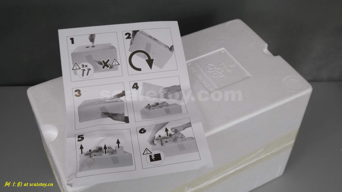 内部为泡沫盒,附带拆箱指南,尤其是底部固定螺丝先要取下,再反转正面朝上操作