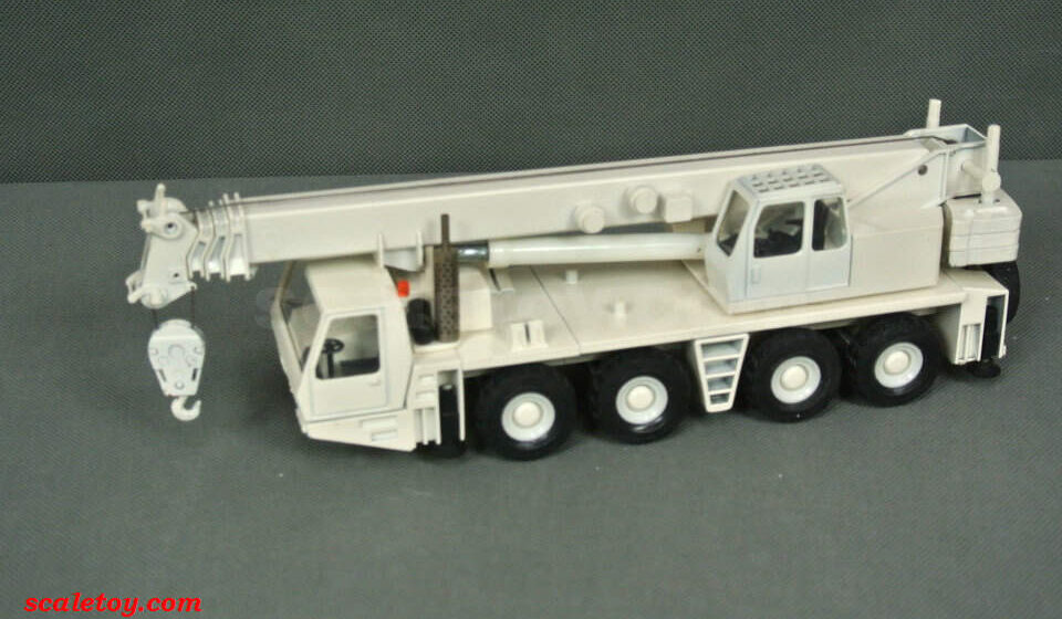 模型的包装和3035是类似的,纸盒上只有基本的车辆参数,包括起吊能力70吨,臂长11.6 – 38.1米,四轴驱动,四轴转向等。但是没有多余的模型信息,如厂家,比例。据说比例是1/50,厂家不详。