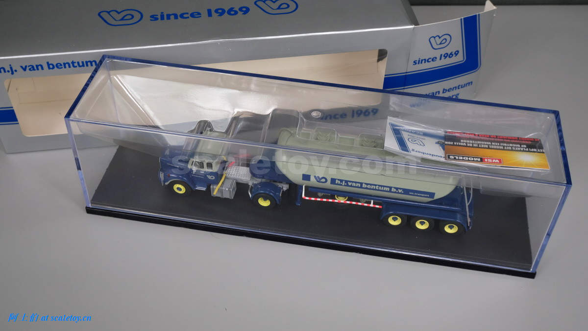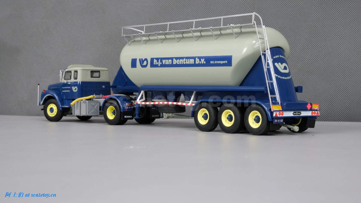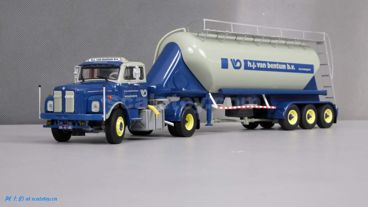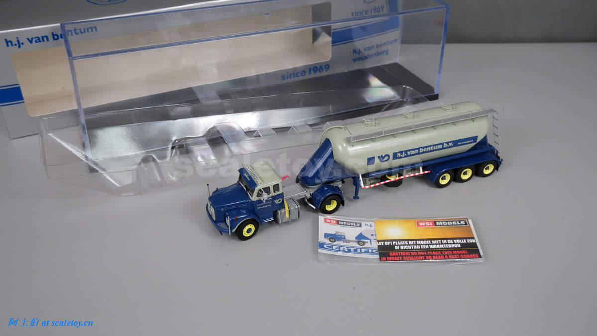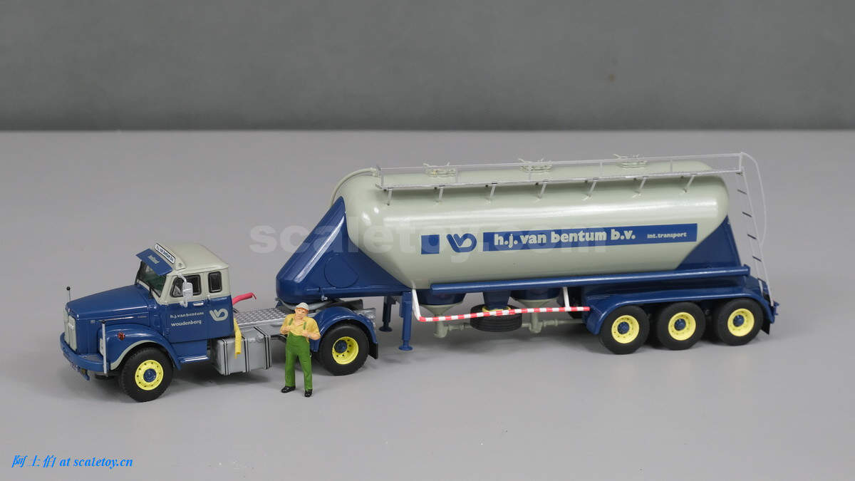 2019年是公司成立50周年,因此也策划了相关模型作为纪念。今天介绍其中另一款,WSI出品的斯堪尼亚L110拖头挂一台槽罐车。模型编号01-2842,比例1/50。