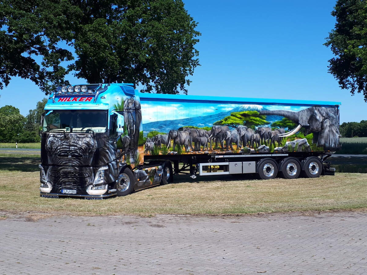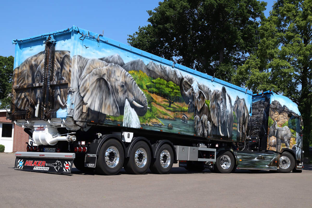 [WSI] VOLVO FH4 GLOBETROTTER XL 2X with 3X VOLUME TRAILER TIPPER – Hilker “ELEPHANTS” 沃尔沃挂自卸车 德国Hilker公司 大象彩绘