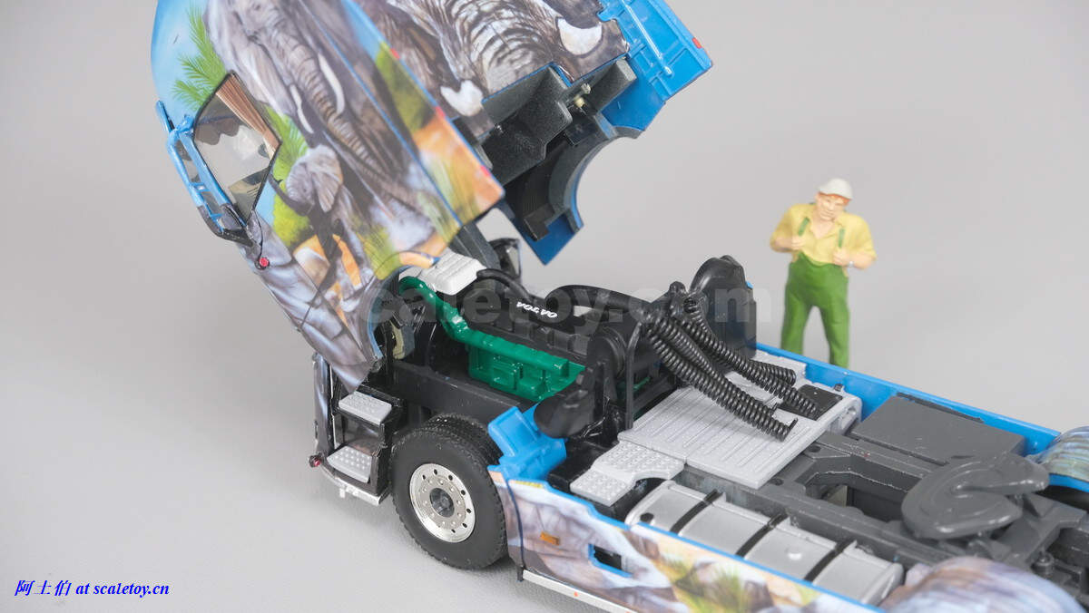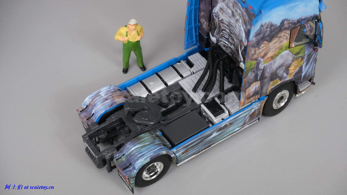 底盘,线路细节都有表现,可以看到靠边那些篷布挂钩结绳子的搭扣都做了细节