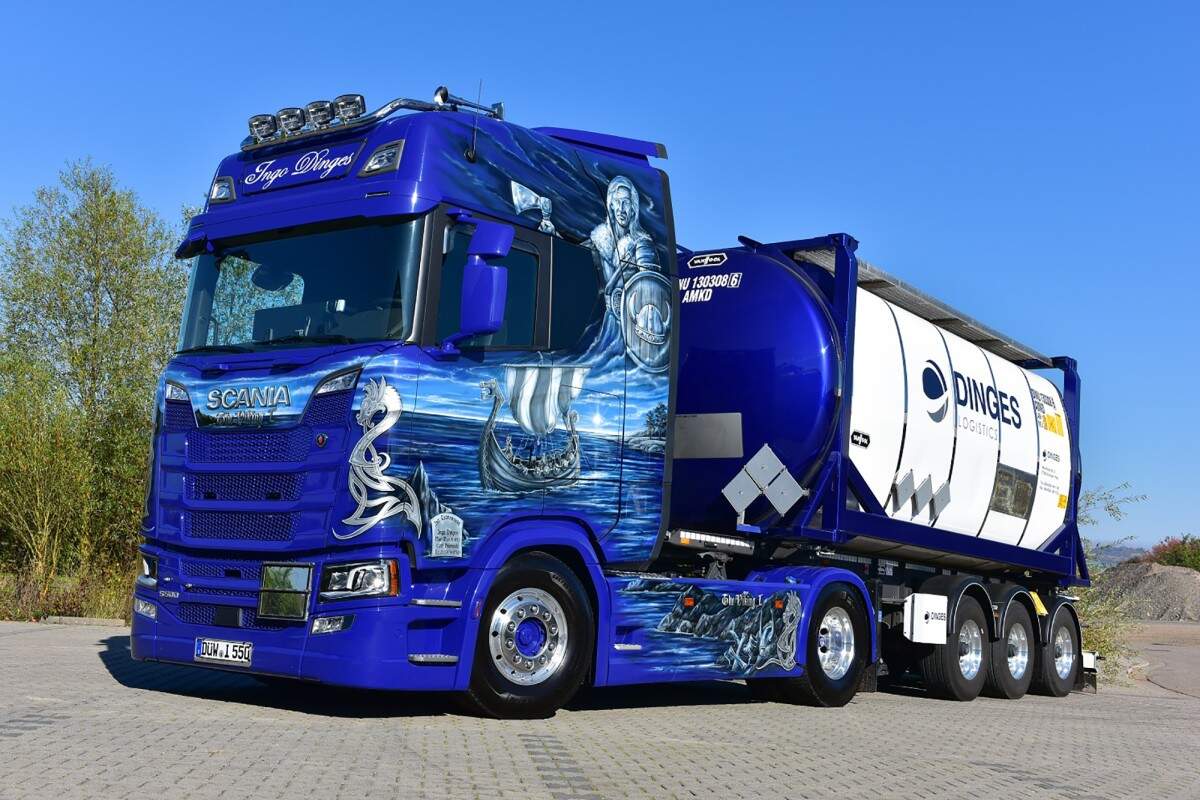 DINGES LOGISTICS的车队涂装颇有特色,大量维京海盗主题系列彩绘,叹为观止。