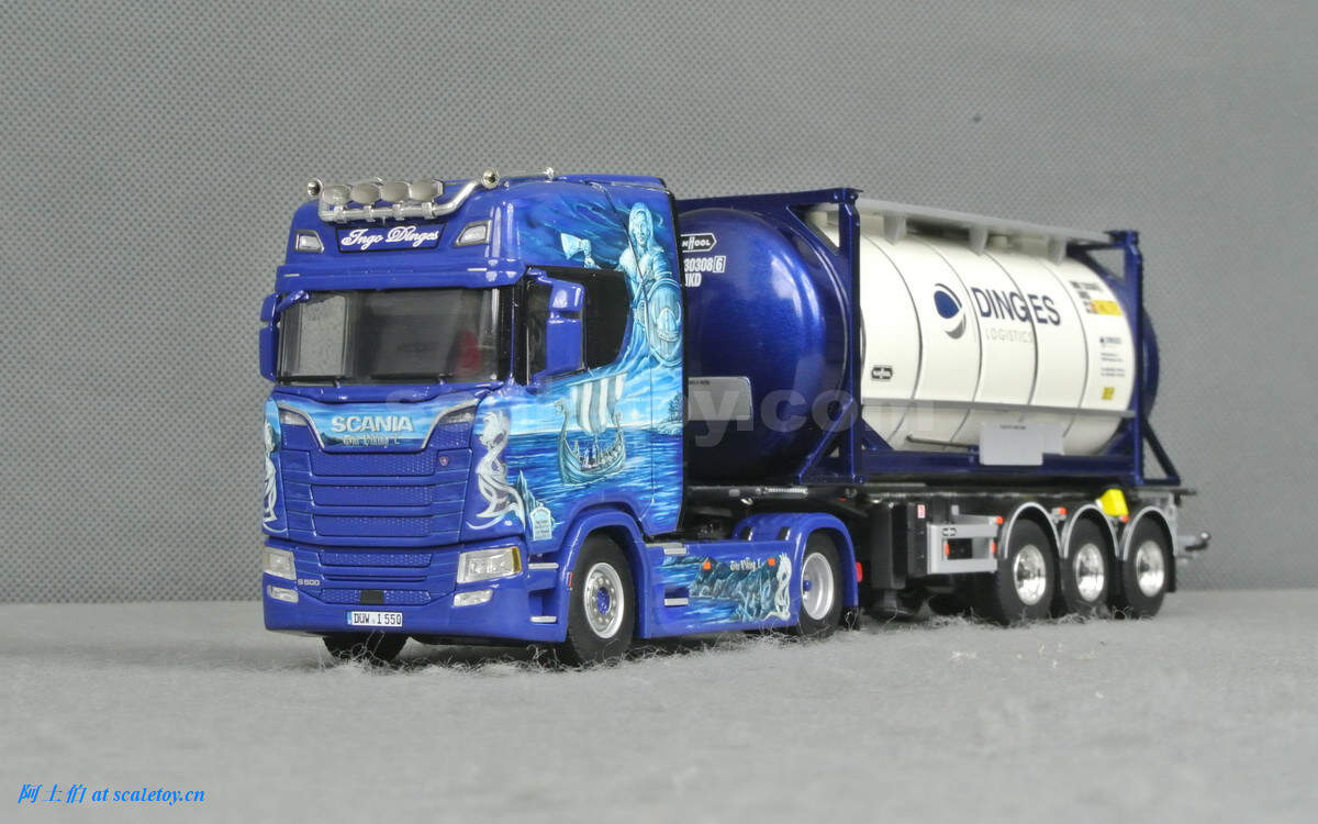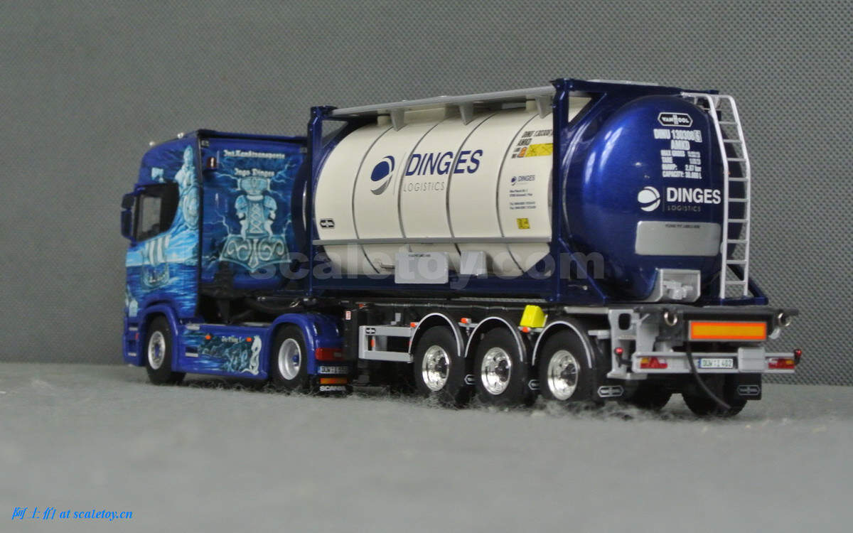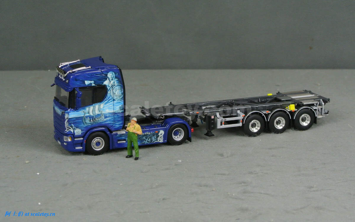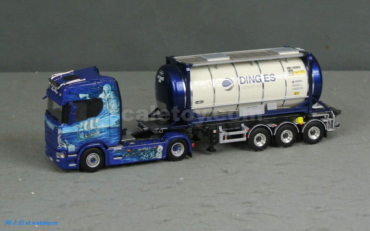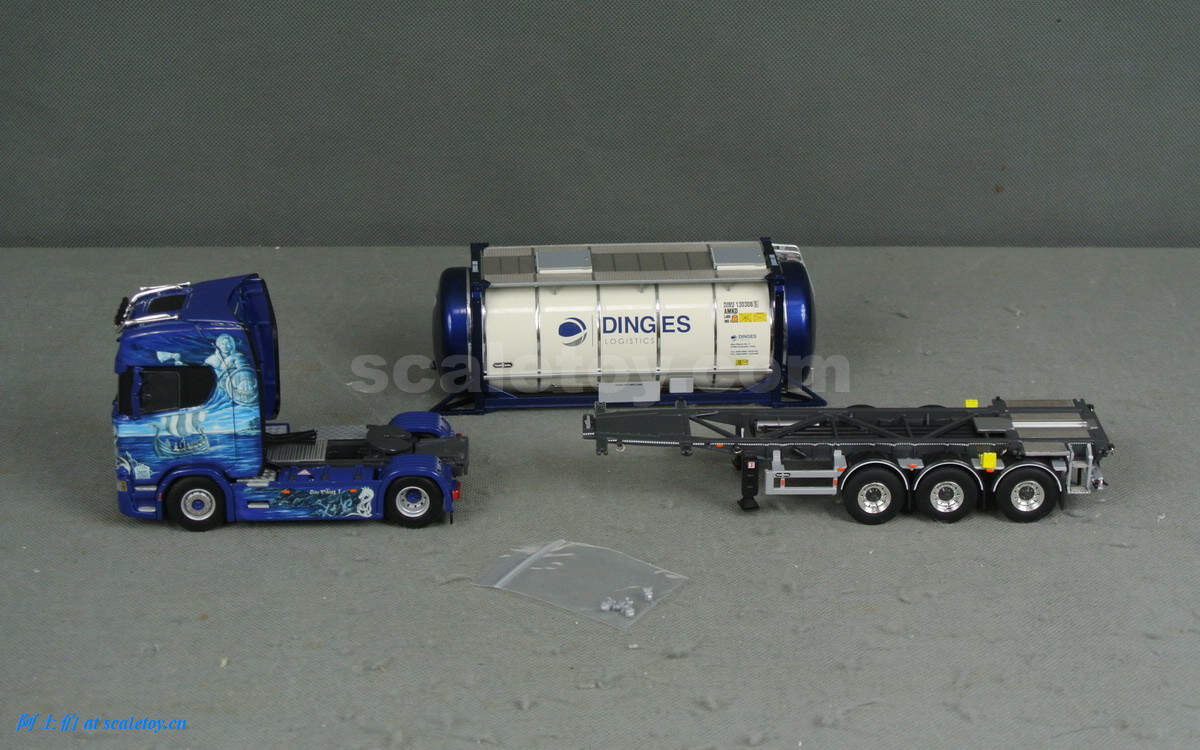 这款是一台斯堪尼亚S HIGHLINE CS20H两轴拖头,挂槽罐集装箱托架,带公司自己的槽罐。实车图片来自WSI及网络。