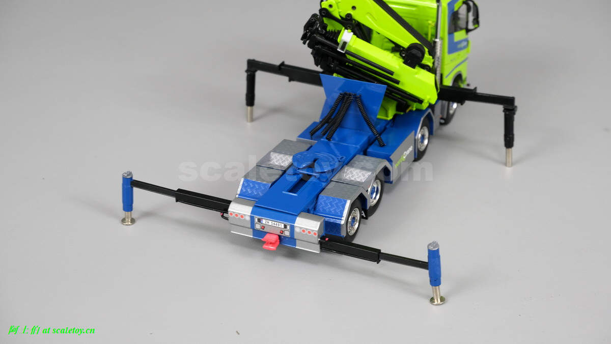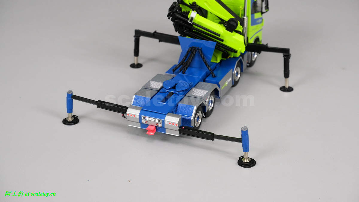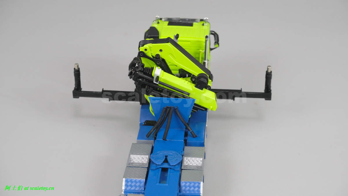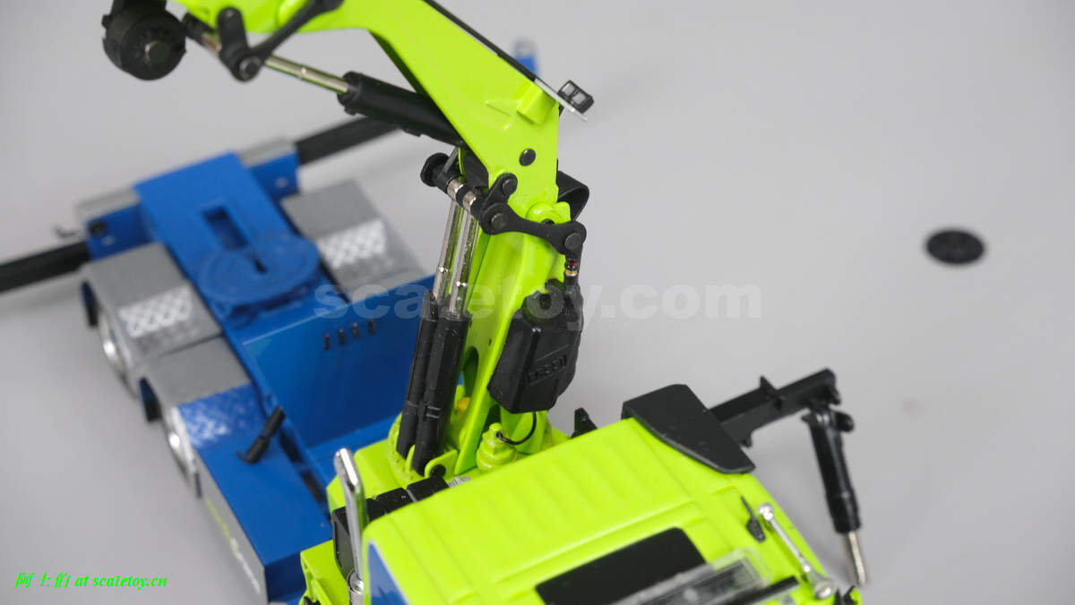 随车吊展开。底部关节双液压,上关节单液压。很紧,把玩请小心。