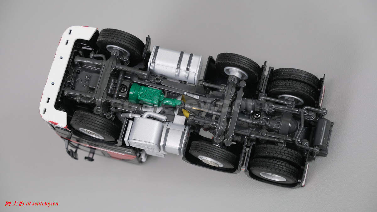 底盘,可以看出前两轴转向联动机构。不过的确模型可转向角度很小。