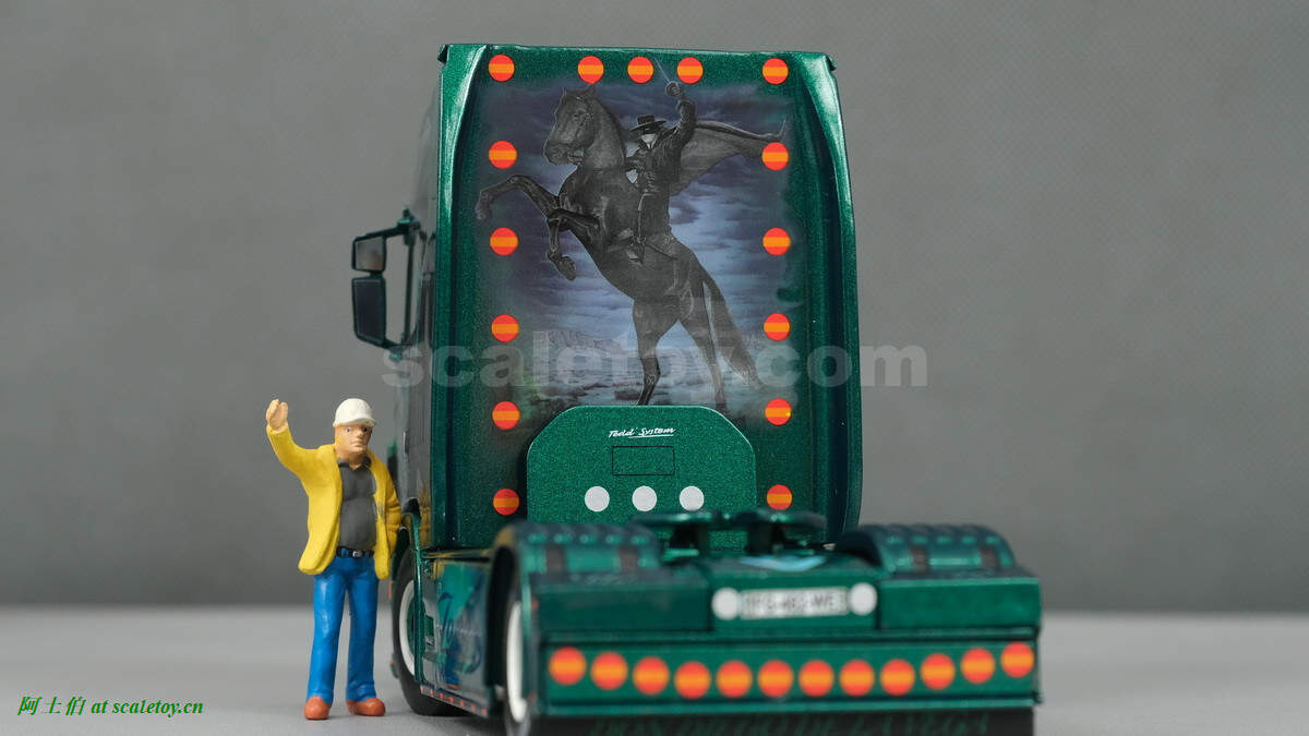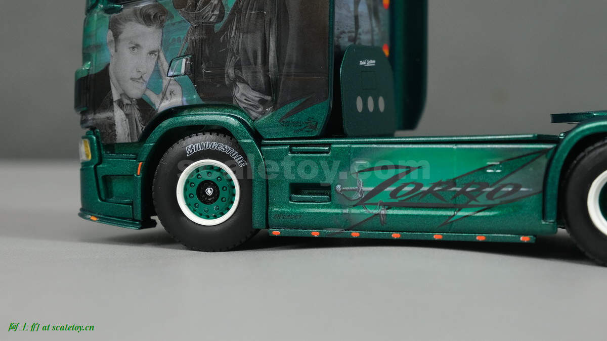 继续介绍该公司车辆和模型。今天的这款车头是一台斯堪尼亚S HIGHLINE CS20H,彩绘是佐罗ZORRO的100周年纪念。