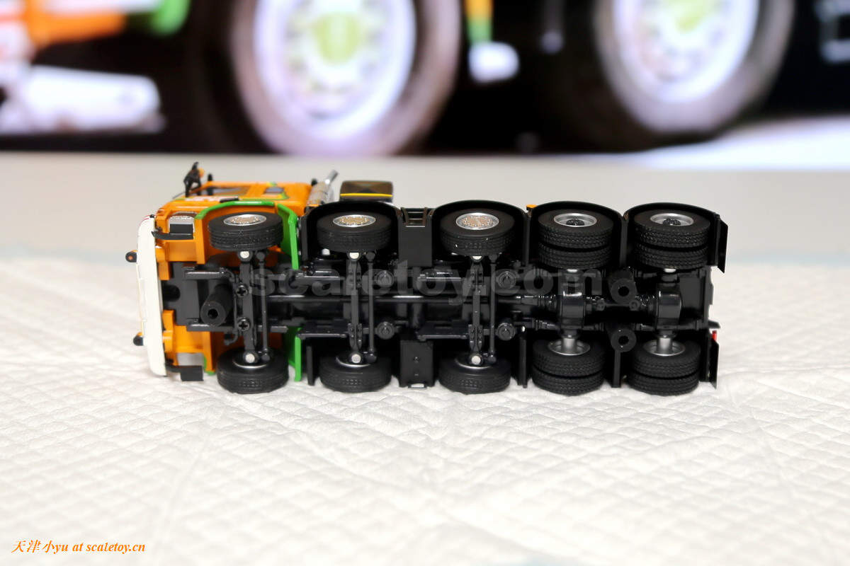 底盘,能看出来是10×4的布局,前三轴转向,但是这个模型做的不好,好像是粘住了,基本不能转向