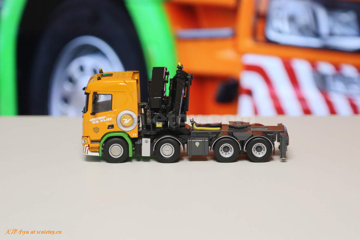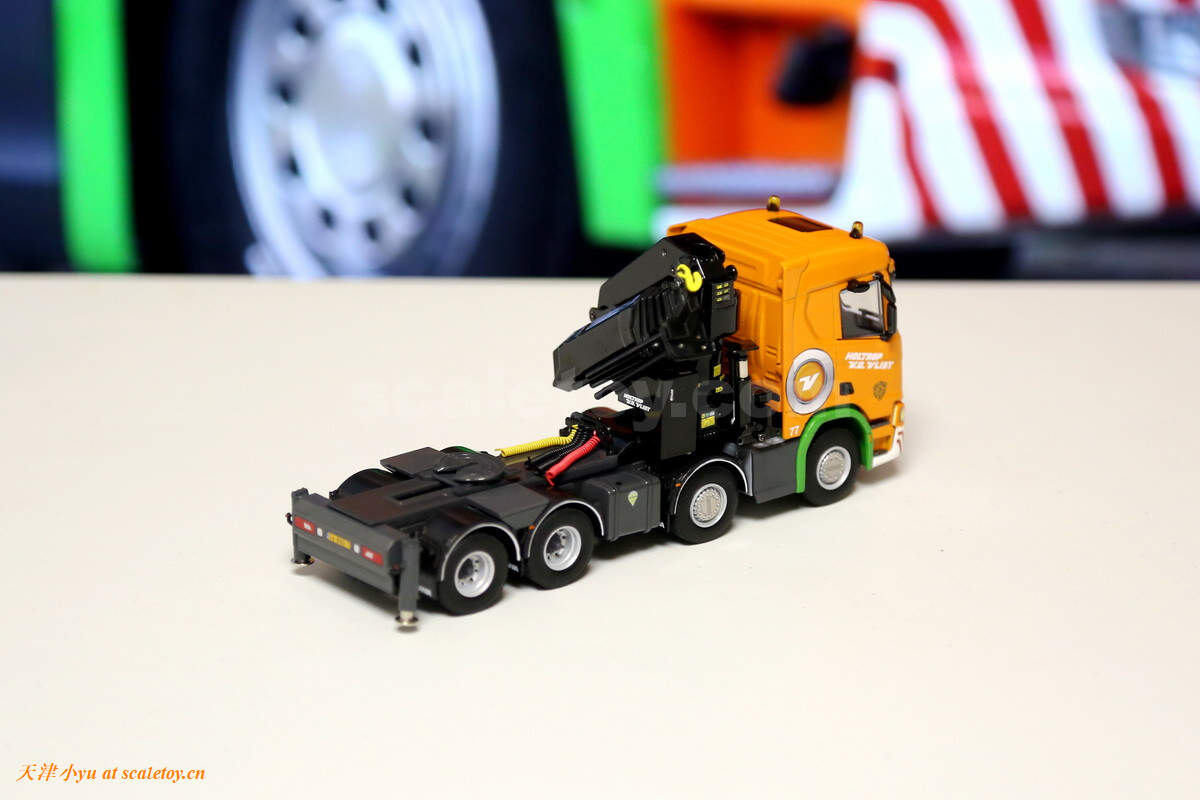 随车吊支腿还是要表扬一下的,首先是上下翻动的关节,松紧度合适,其次油缸的细节也全都做出来了,但是为什么是一正一反的两个油缸?