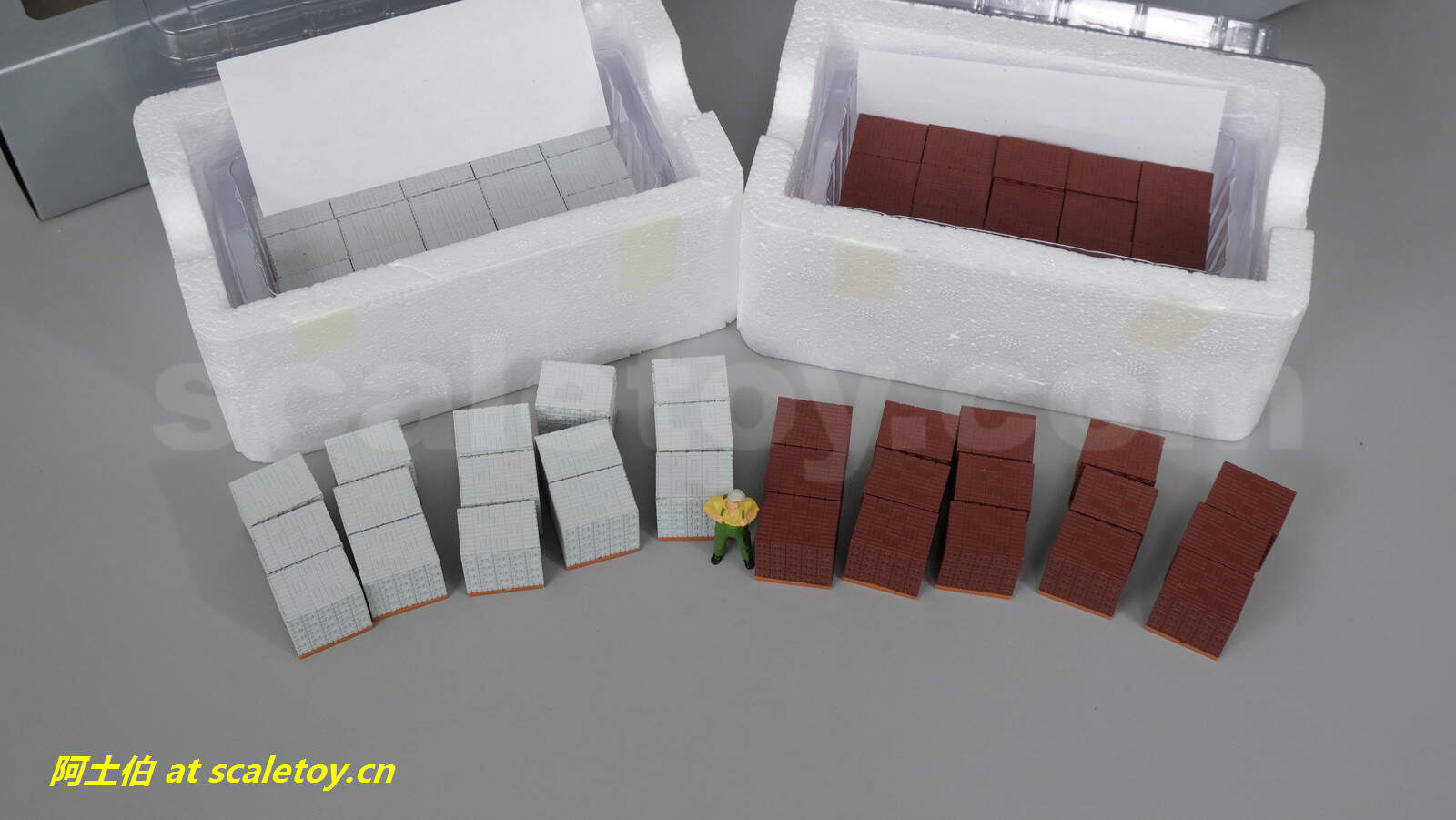 这是WSI出的运输或场景用配件,砖块,分红色和灰色两种,其中红色编号为12-1002,灰色编号为12-1003。比例都是标准的1/50。