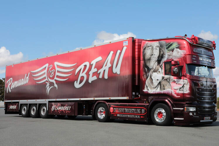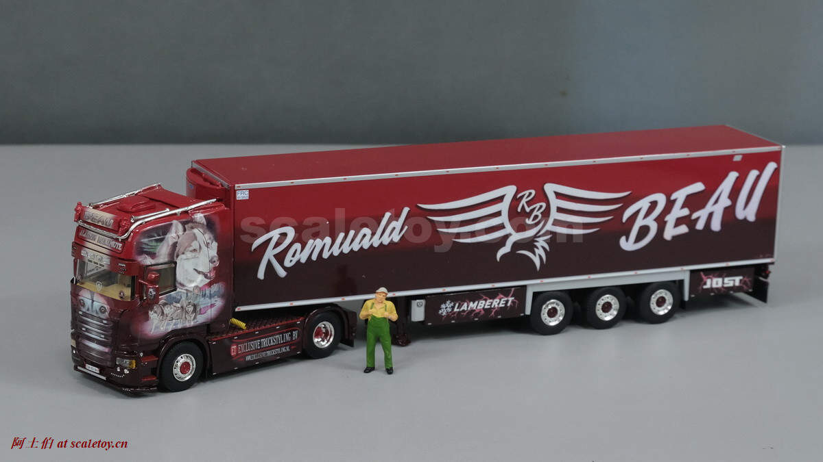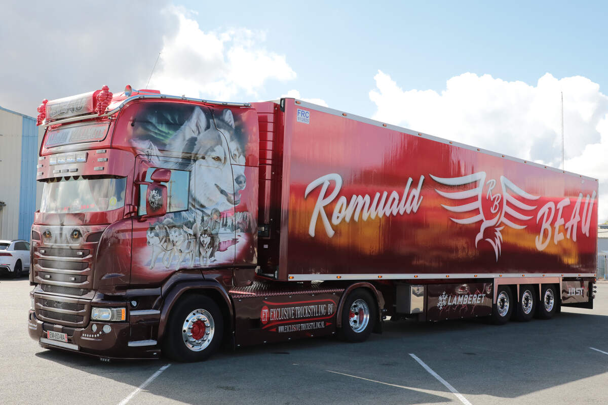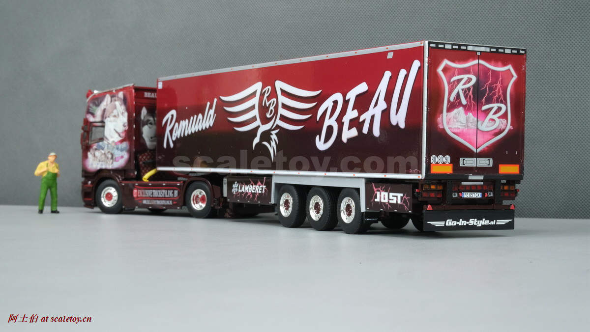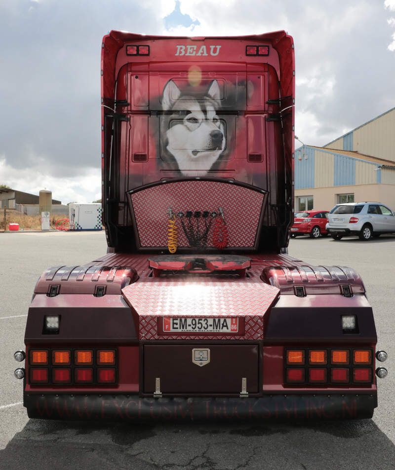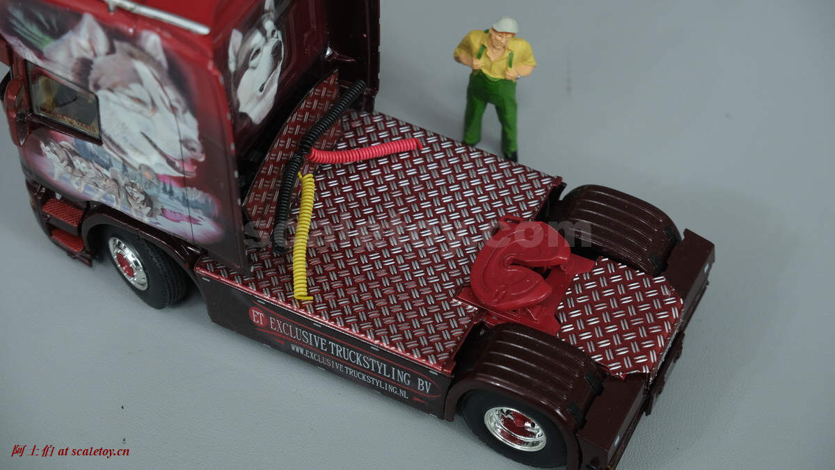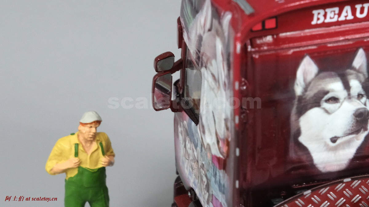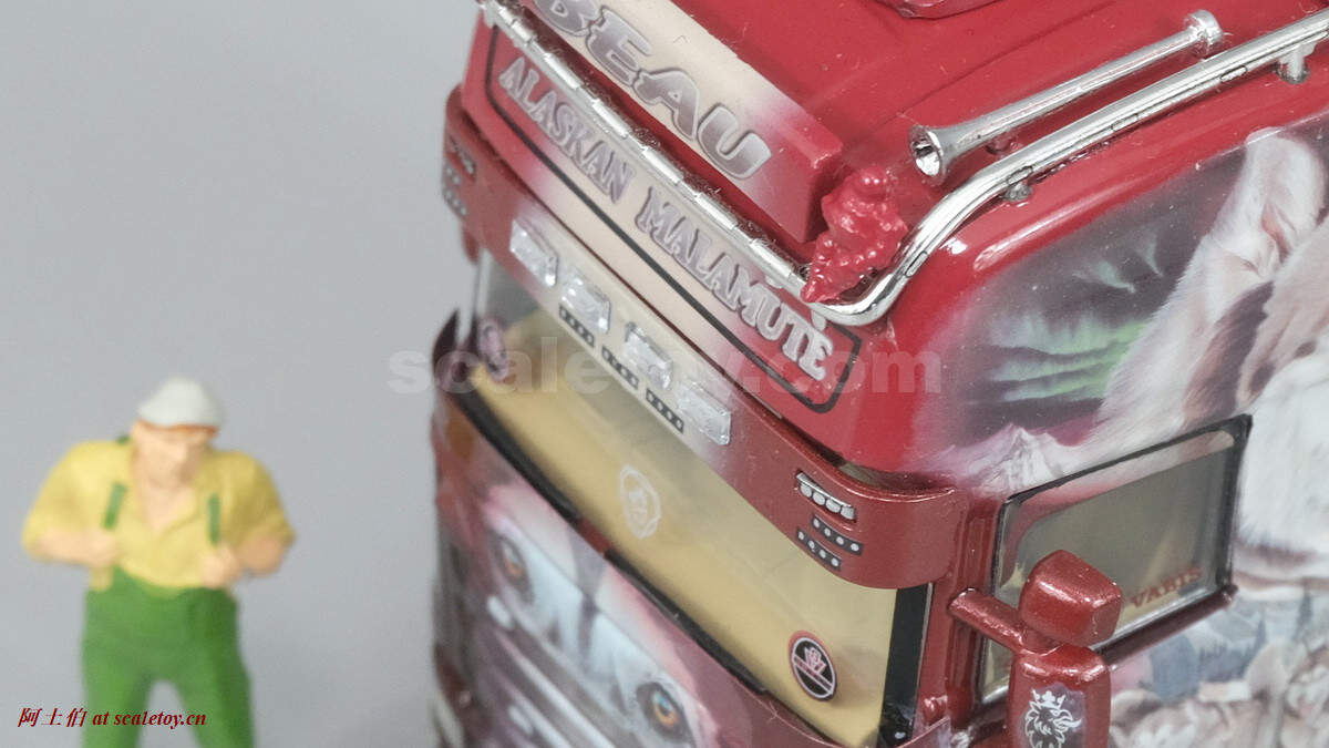 今天介绍的彩绘车辆涂装主题就是Alaskan Malamute,我想也是和冷藏运输的主题有点点关联吧。拖头是一台斯堪尼亚的STREAMLINE TOPLINE 4X2,挂车是3轴的冷藏厢式,主题彩绘主要集中在拖头,挂车是公司彩涂没有其他主题展现。
