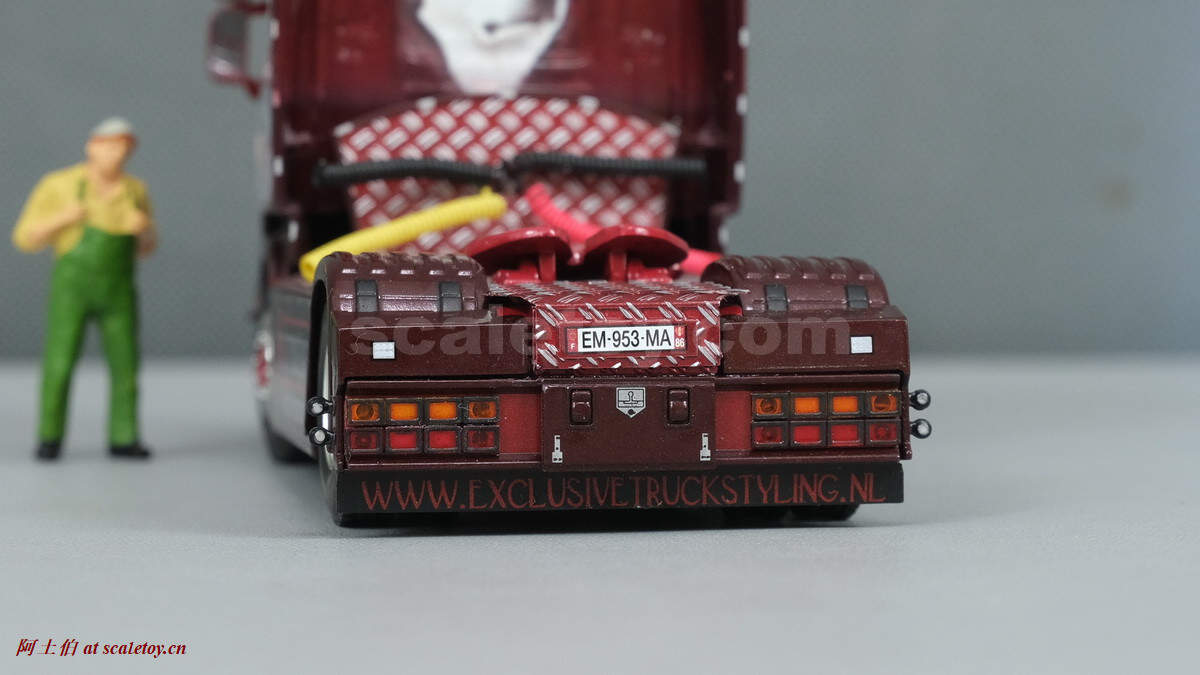 尾部,复杂的灯组。底盘忘了拍,三轴应该是都不可转向的,带弹簧避震。
