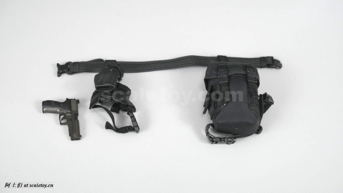 腰带上挂了手枪和便携包