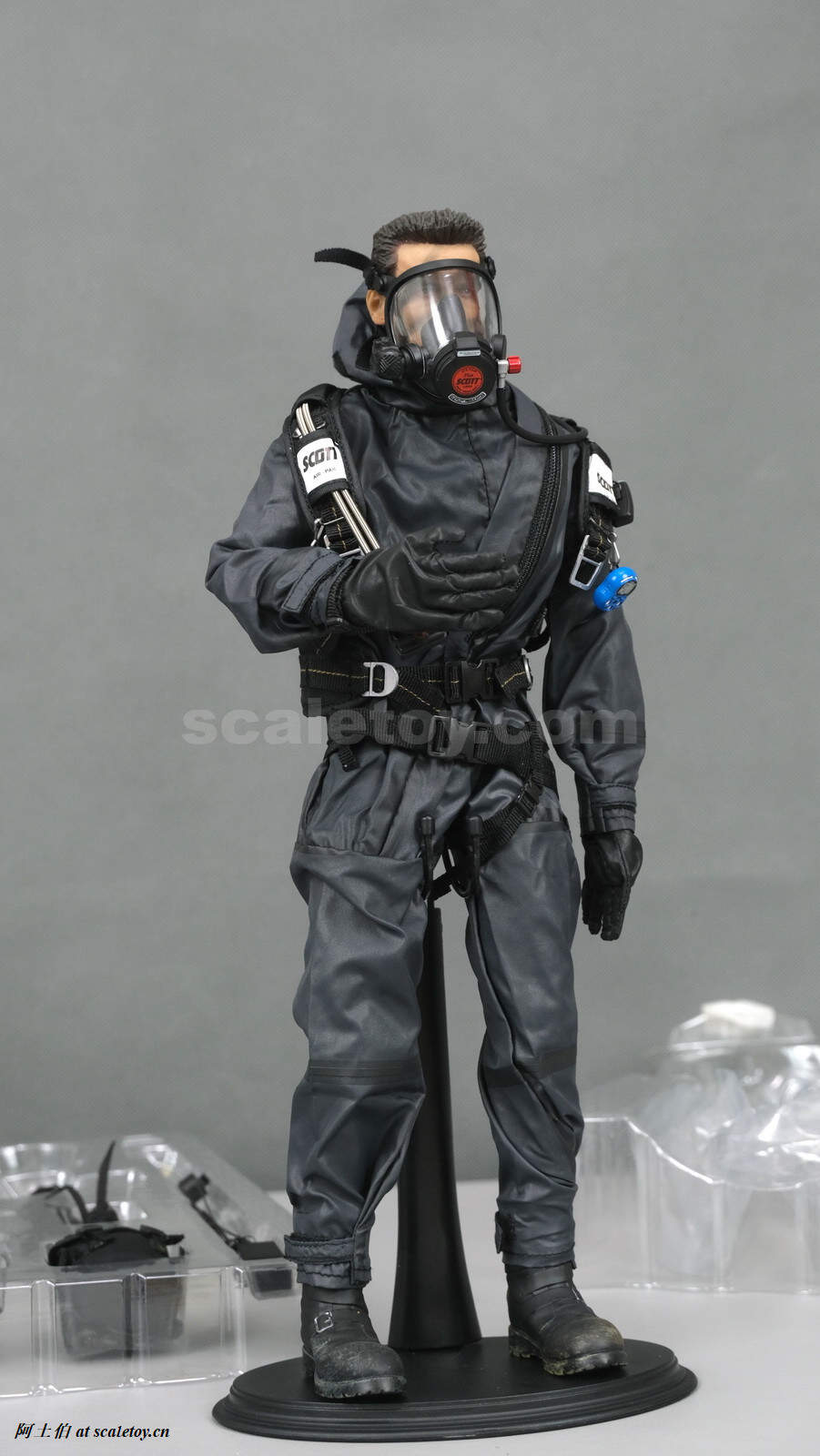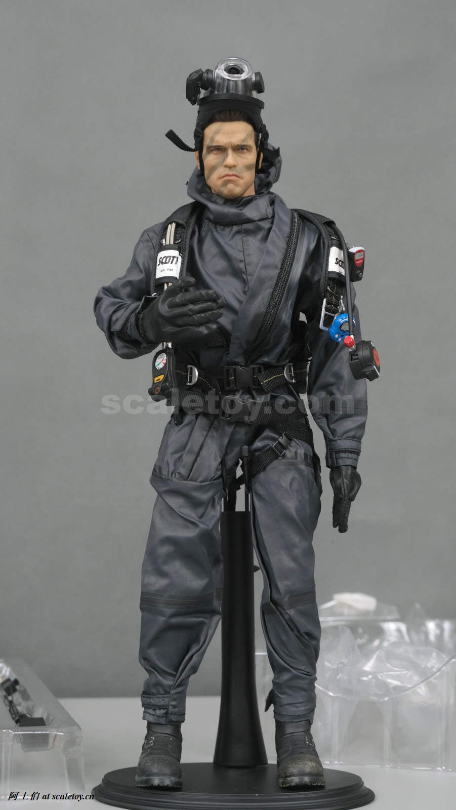 上篇讲到[DAMTOYS] 78050还多了不少装备,那套酷酷的生化防护服,我看就给州长吧。另配了州长头雕加素体。鞋子也是必须的。