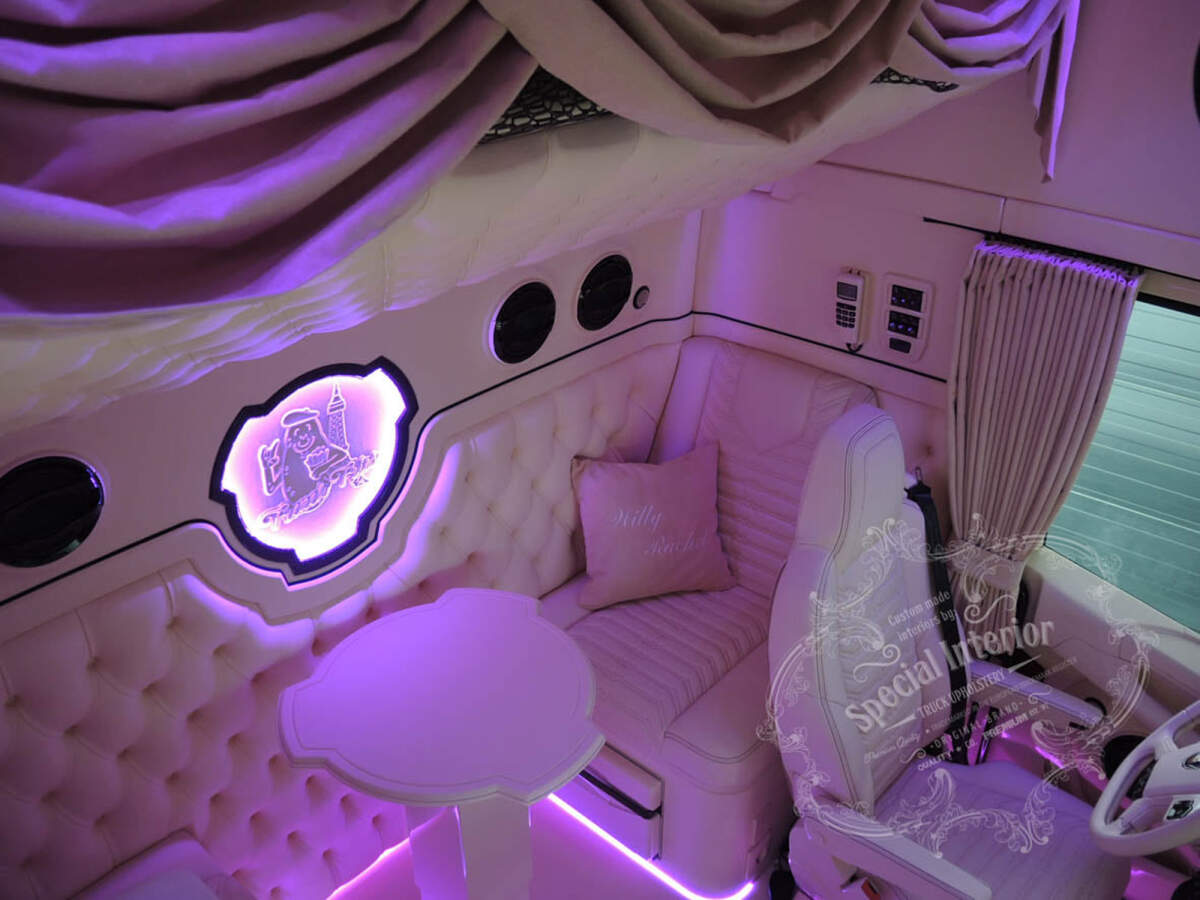前窗有窗帘等花纹,后视镜壳上也有图案