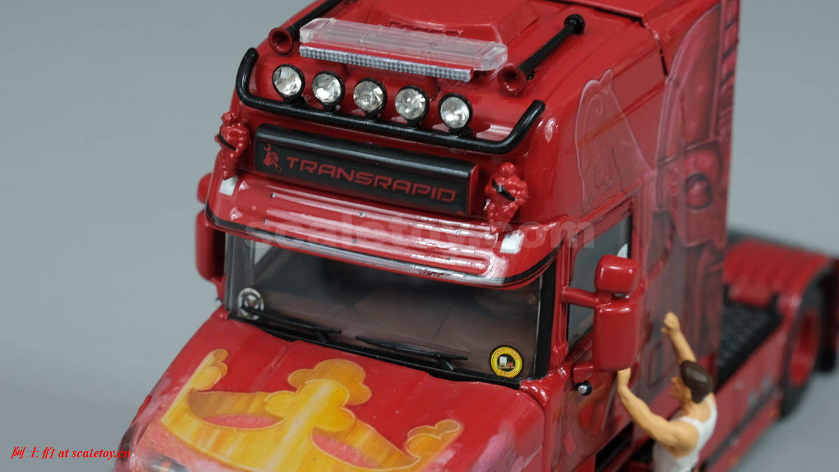 拖头 tractor[WSI] SCANIA 4 SERIES TORPEDO TOPLINE 4X2 – TRANSRAPID 斯堪尼亚长头 法国TRANSRAPID公司涂装 作者 阿土伯 2022年3月21日 1 分钟阅读 0 TRANSRAPID是一家法国的运输公司,貌似很喜欢斯堪尼亚的长头。今天要介绍的是一款 SCANIA 4 SERIES TORPEDO TOPLINE 4X2,涂装是北欧海盗。 模型为WSI出品,编号01-3318,比例1/50: 带第五轴彩绘盖板 证件照 顶部,透明的警示灯条。加装头灯。公司灯箱两侧是米其林宝宝。 车内也采用彩色内部构件细节。 侧面,车轮前后都有攀登阶梯 后视镜反光不错 发动机可见 拖挂部位全部覆盖金属防滑板 尾部装满了灯组,两侧有示廓小灯 底盘,感觉左右两侧都是油箱位置 前轮前方也有SCANIA挡泥板 啊啊啊啊啊! 标签: SCANIATOPLINETORPEDOTRANSRAPIDWSI