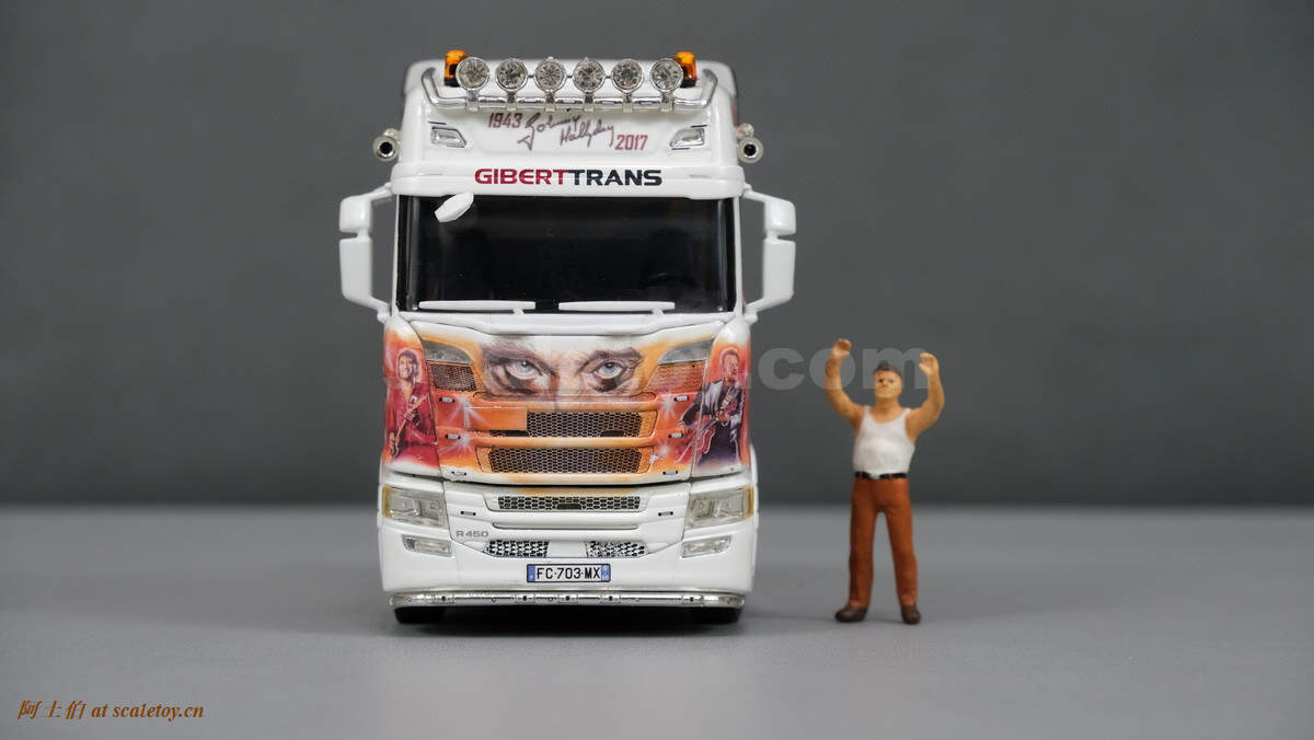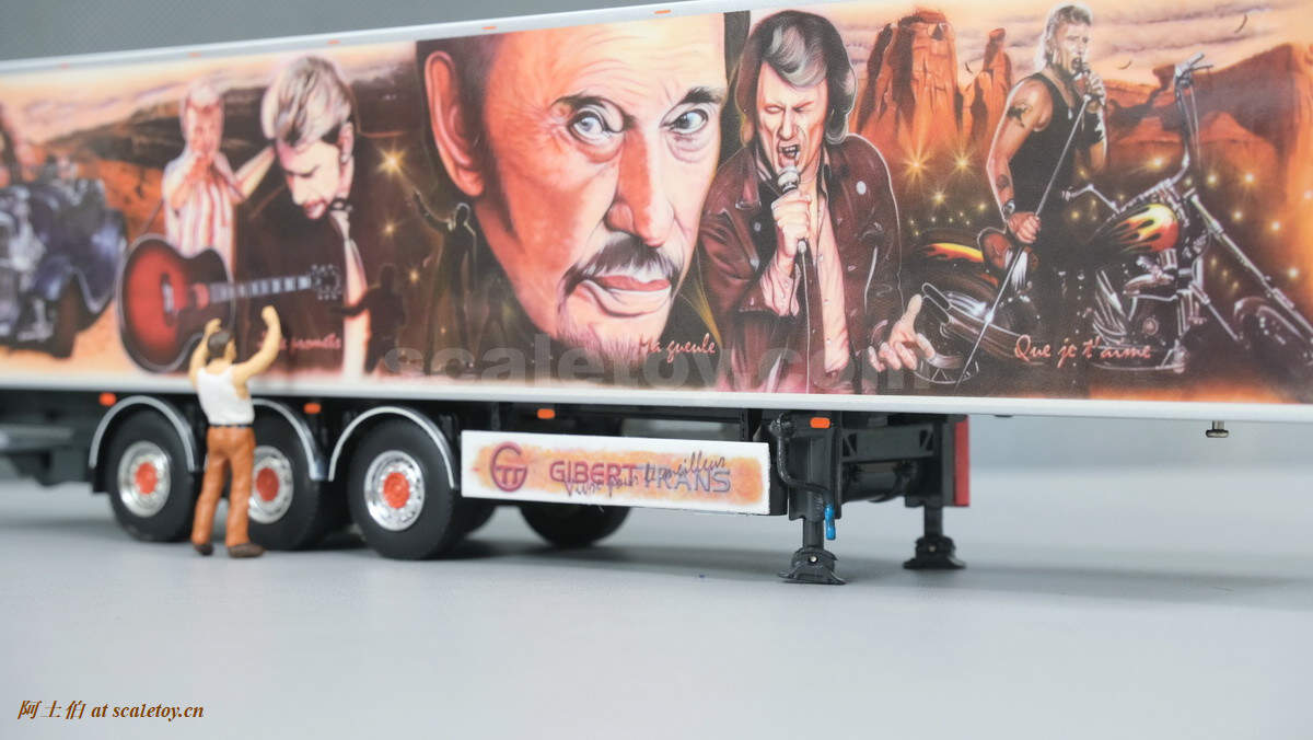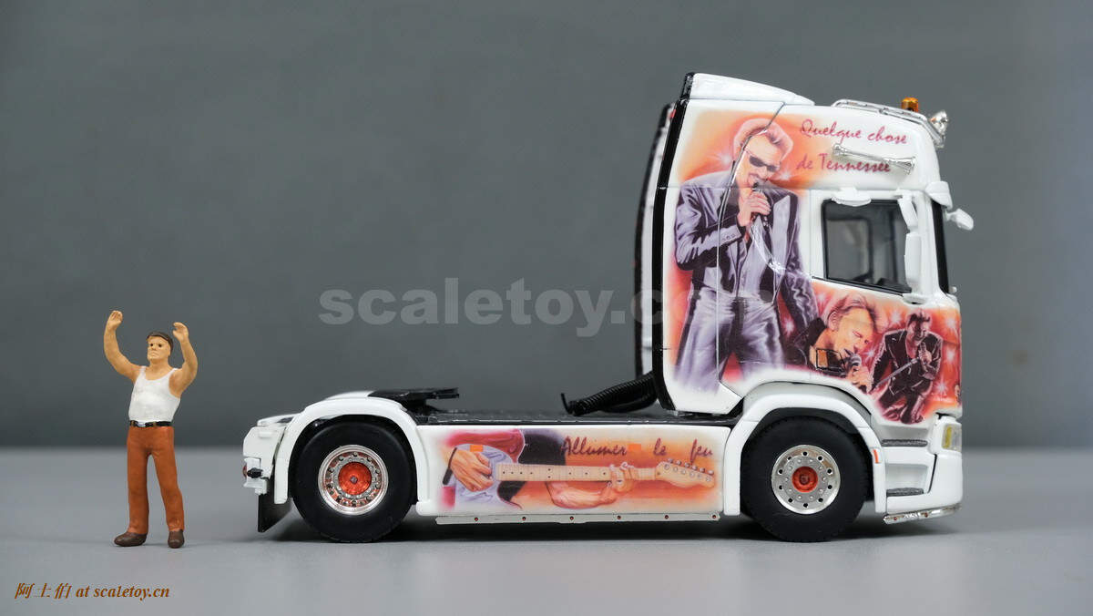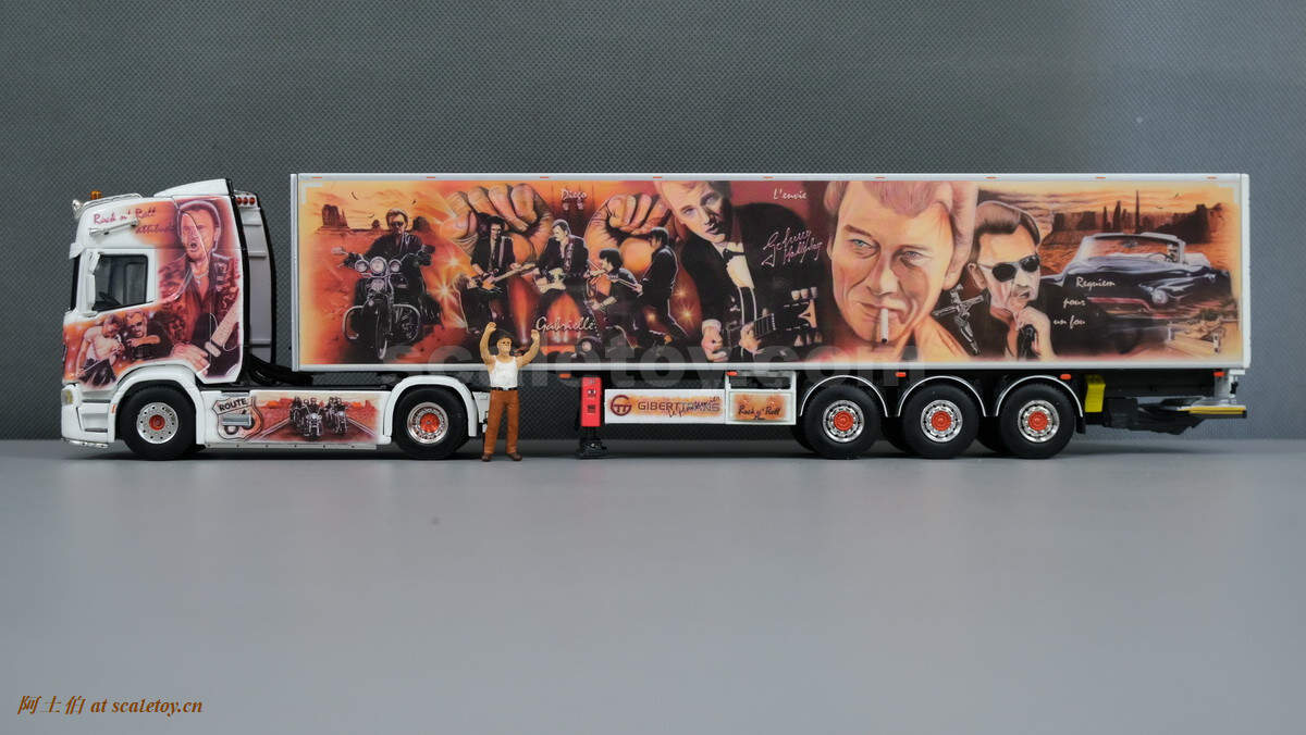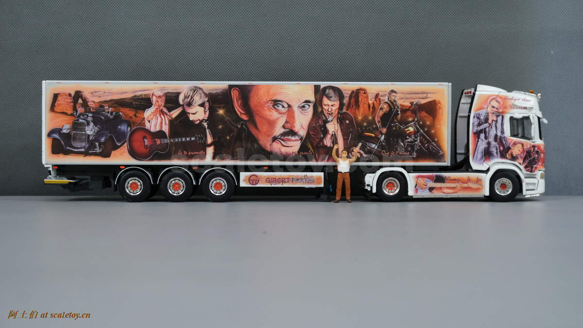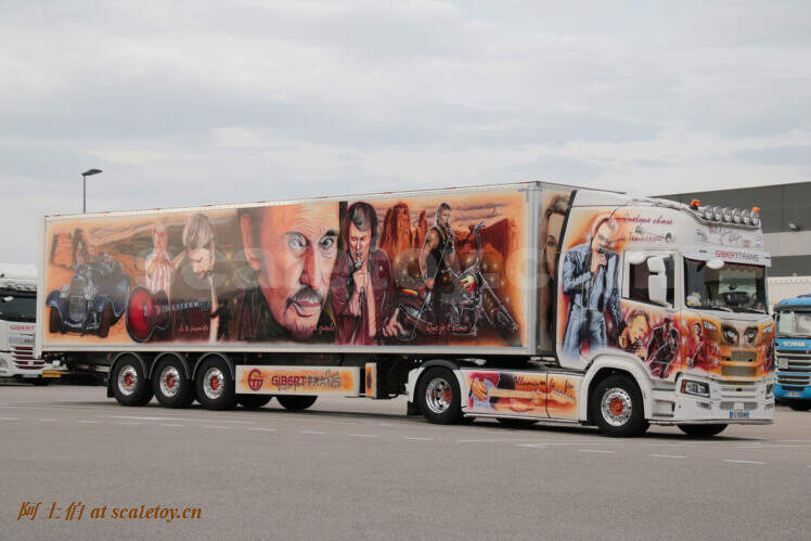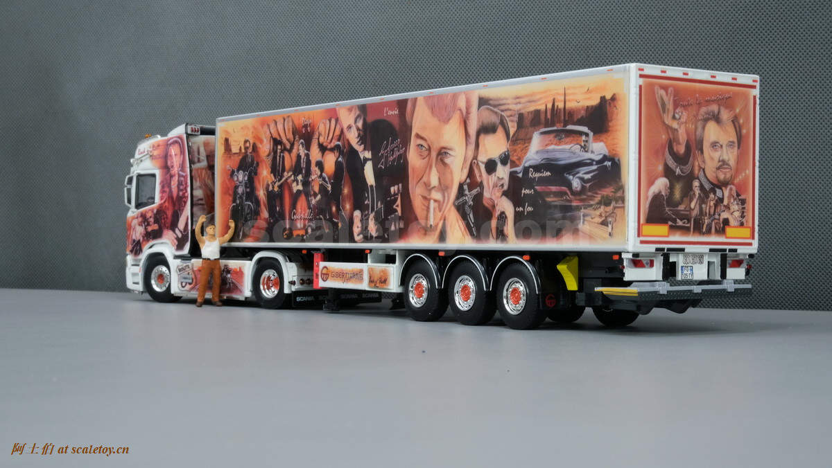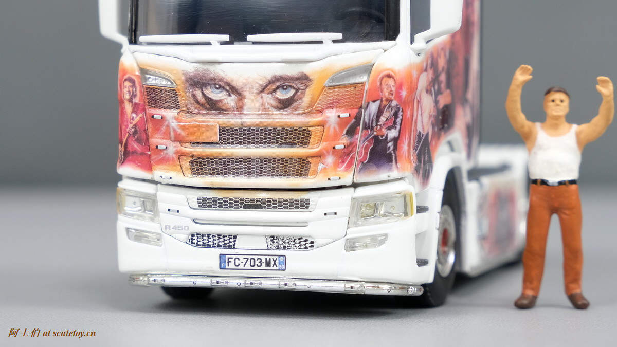 今天要介绍的车辆是一台斯堪尼亚 R HIGLINE CR20H 4X2拖头,挂厢式货车,彩绘涂装为法国著名歌手Johnny Hallyday