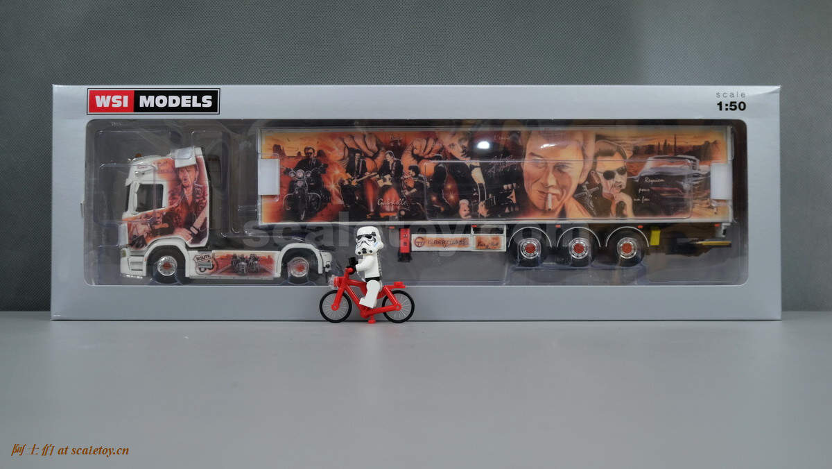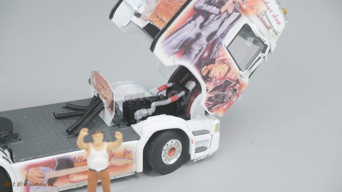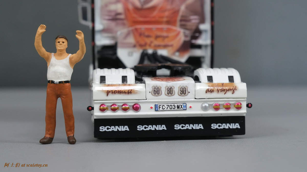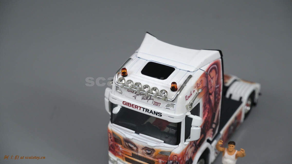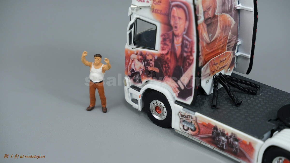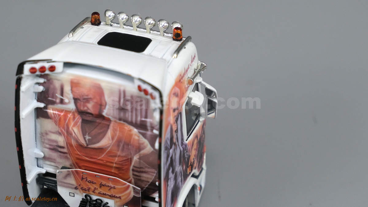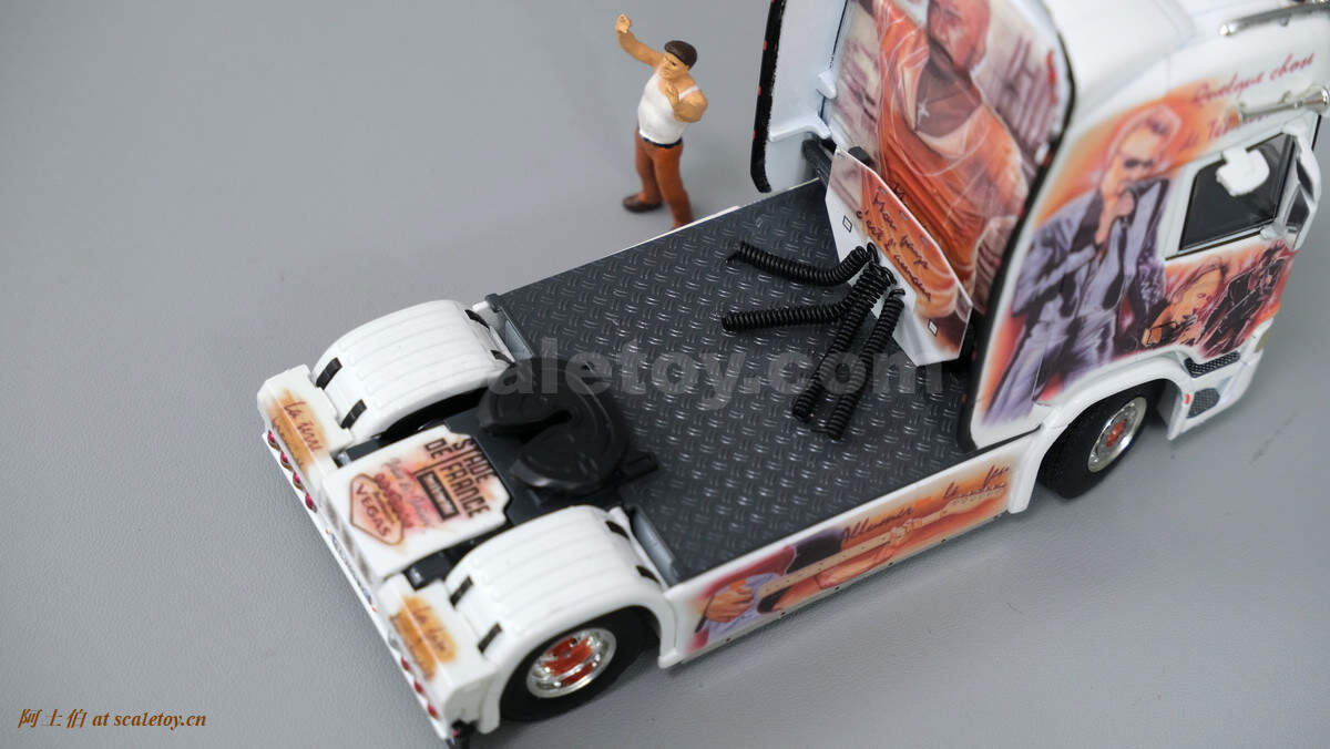 今天要介绍的车辆是一台斯堪尼亚 R HIGLINE CR20H 4X2拖头,挂厢式货车,彩绘涂装为法国著名歌手Johnny Hallyday