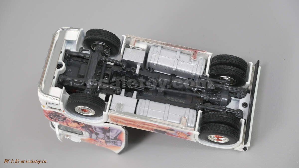 底盘,三轴不可转向,都带弹簧避震。尾部有装卸尾板结构,不可动。