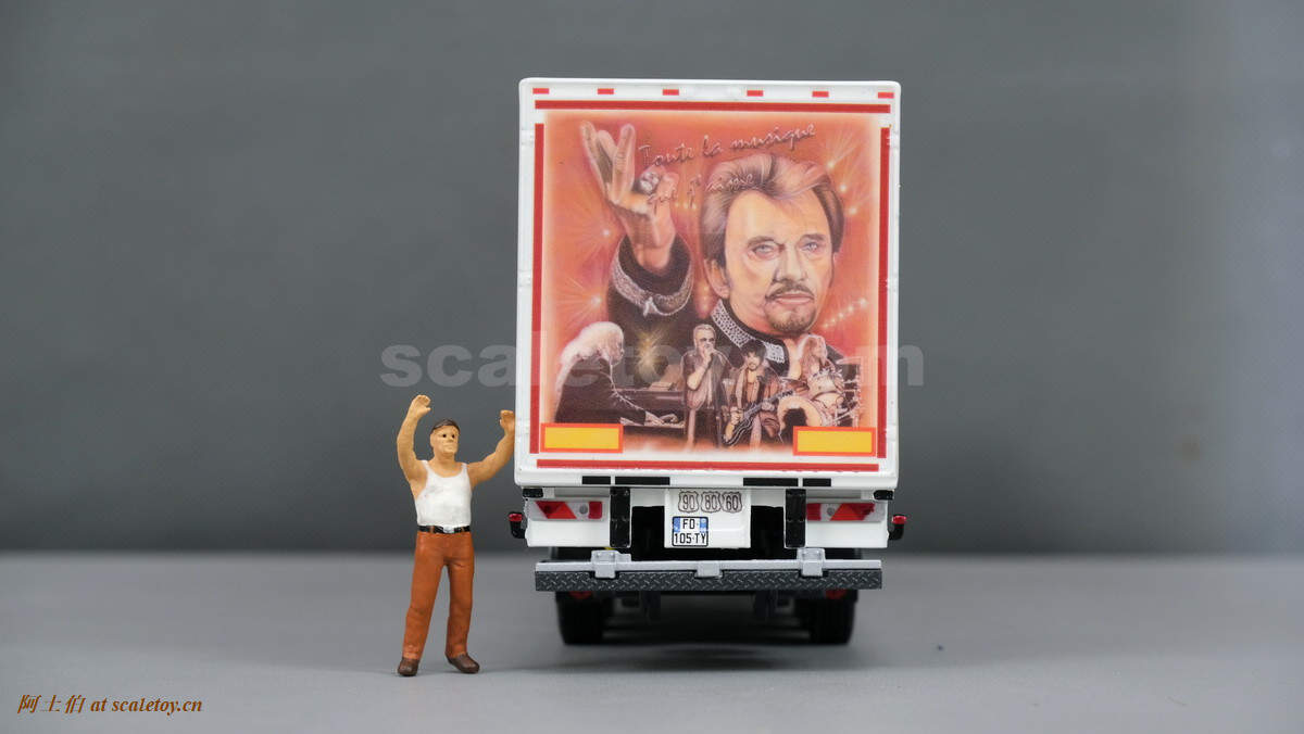 前脸是Johnny Hallyday的一双眼睛注视,两侧为他的舞台现场照。车牌清晰。下方也加了金属灯管美化。