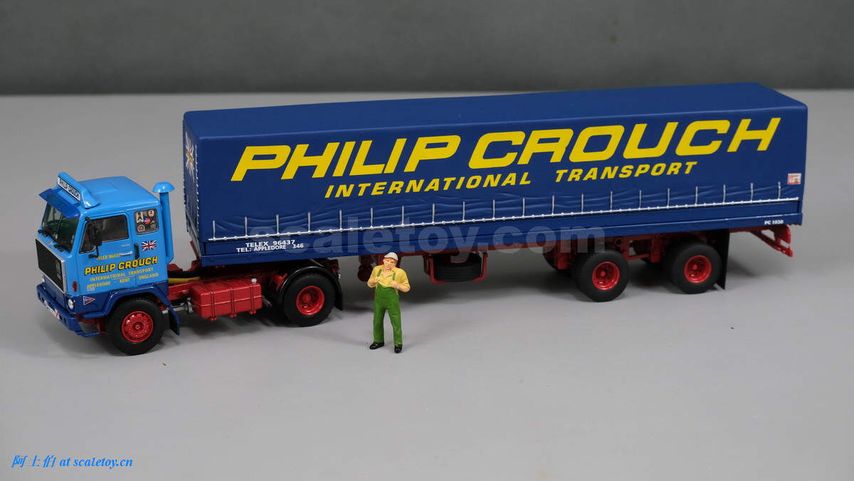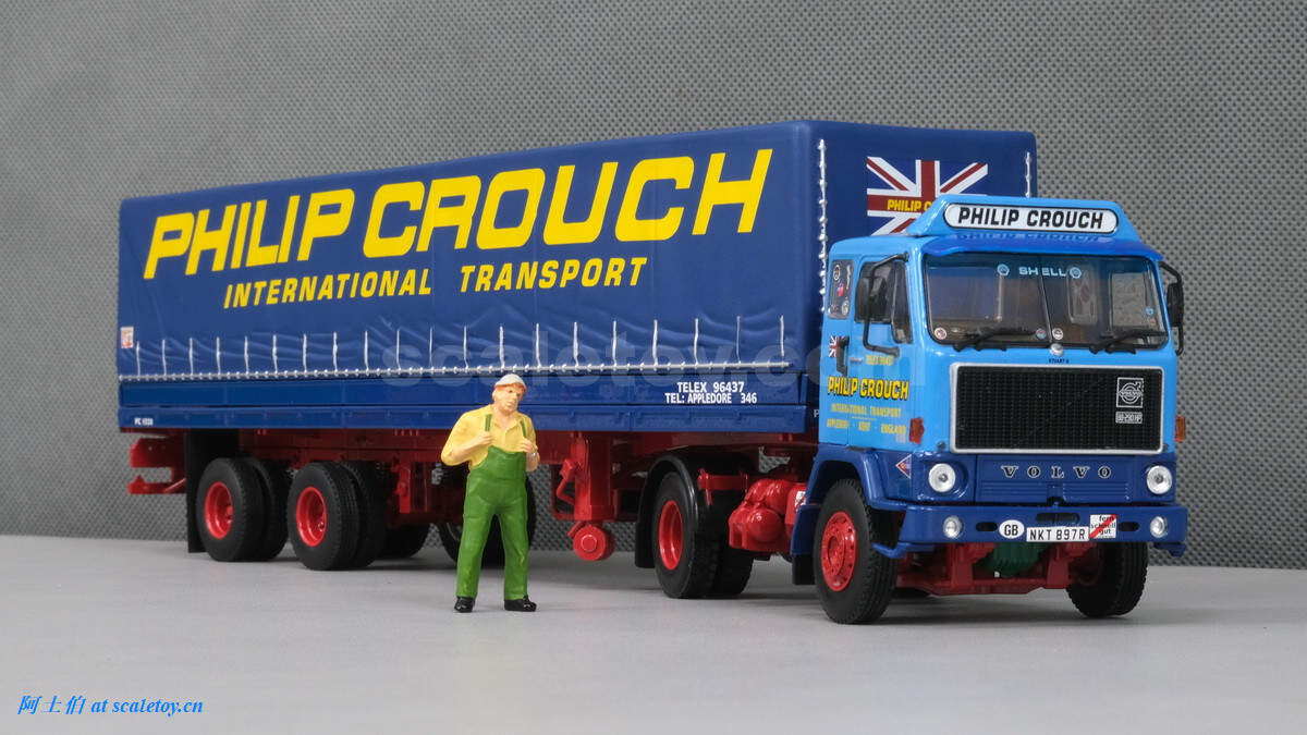 介绍一款WSI的英国经典200系列模型,车型为沃尔沃F88两轴拖头挂侧帘挂车,涂装是英国运输公司Philip Crouch,一家上世纪七八十年代的运输公司,车队主要是沃尔沃,业务覆盖了英国和欧洲。
