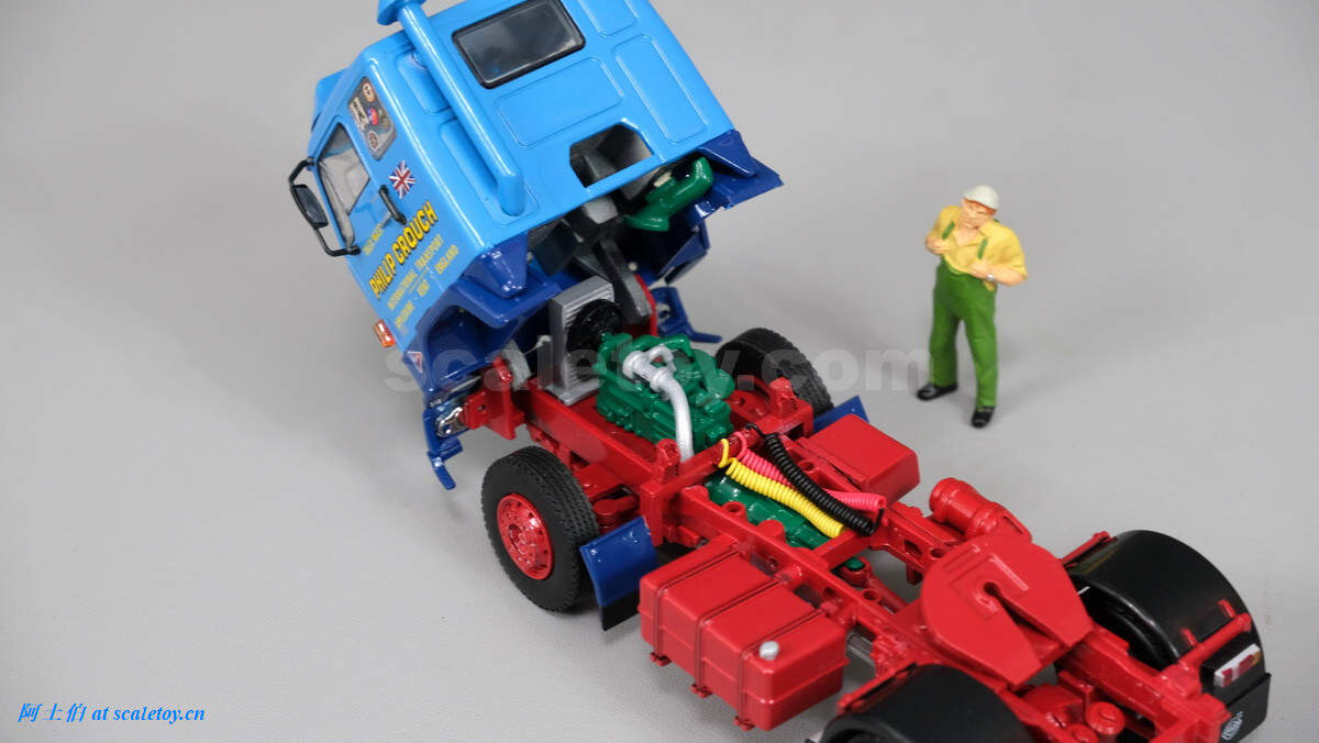 非常具有历史味道的沃尔沃F88拖头,宽大敞亮的驾驶室想必也是当时驾驶员的最爱吧。因为是英国车,所以驾驶位在右侧,方向盘靠右。