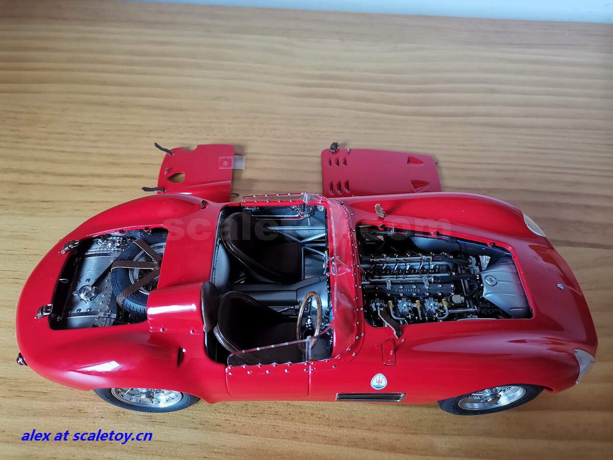 和1956年生产的所有Maserati 300 S一样,作为CMC复制模板的车型,其方向盘右置,半凸鼻车身造型,两个进气口分别置于前灯下面的散热格栅之后。车身侧面通风格栅为此车的一大亮点。其它特色还包括5档变速和精美的波浪式挡风边框设计。