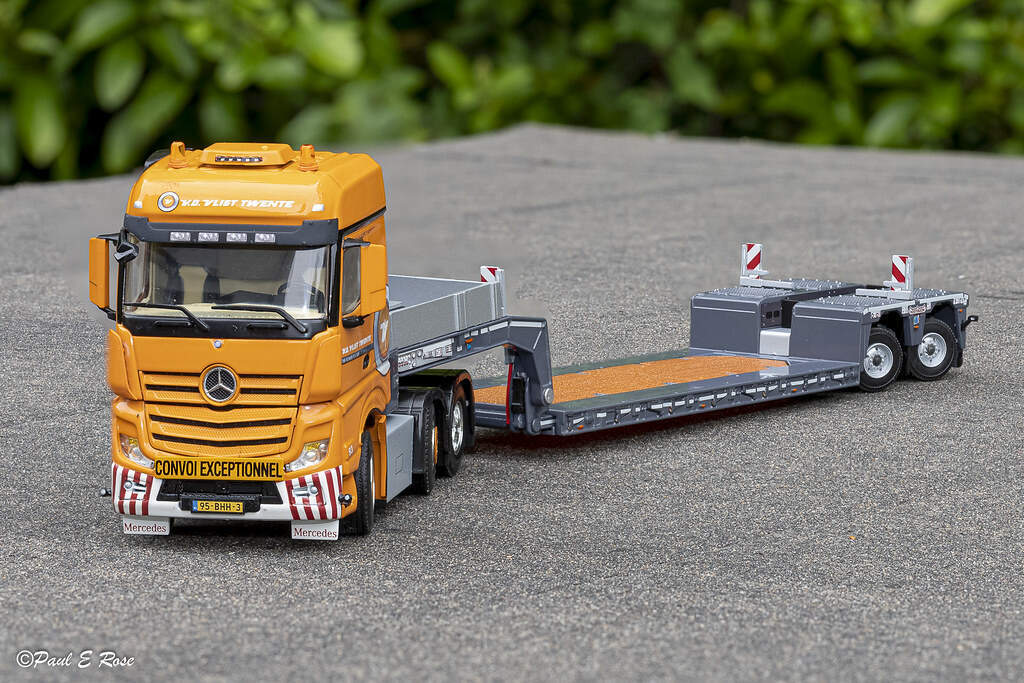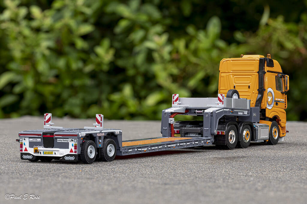 - [WSI] MERCEDES-BENZ ACTROS MP4 BIG SPACE 6X2 TWINSTEER with NOOTEBOOM 2X EURO-PX LOWLOADER – FRANK WULF 奔驰ACTROS拖头挂NOOTEBOOM两轴低板 德国FRANK WULF公司涂装
