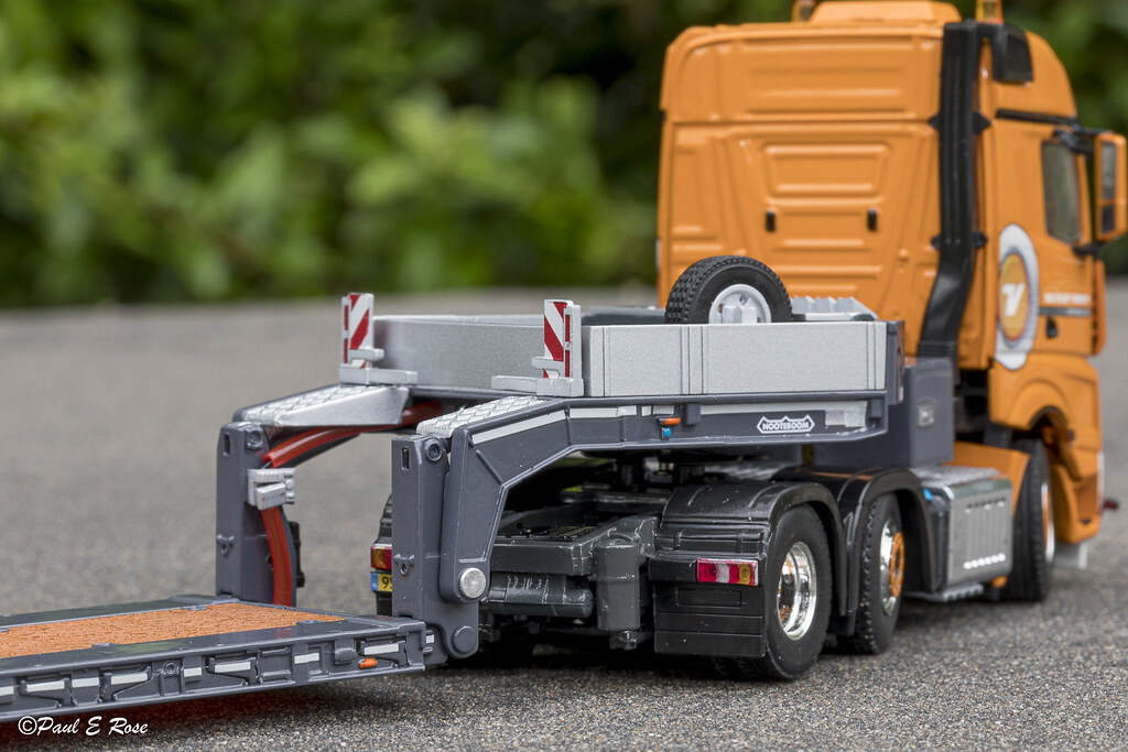 - [WSI] Nooteboom Red Line; MERCEDES-BENZ ACTROS MP5 BIG SPACE 6X4 with NOOTEBOOM MANOOVR 5X SEMI LOWLOADER with ramp 奔驰拖头挂NOOTEBOOM MANOOVR 五轴半低板 带尾部翻板