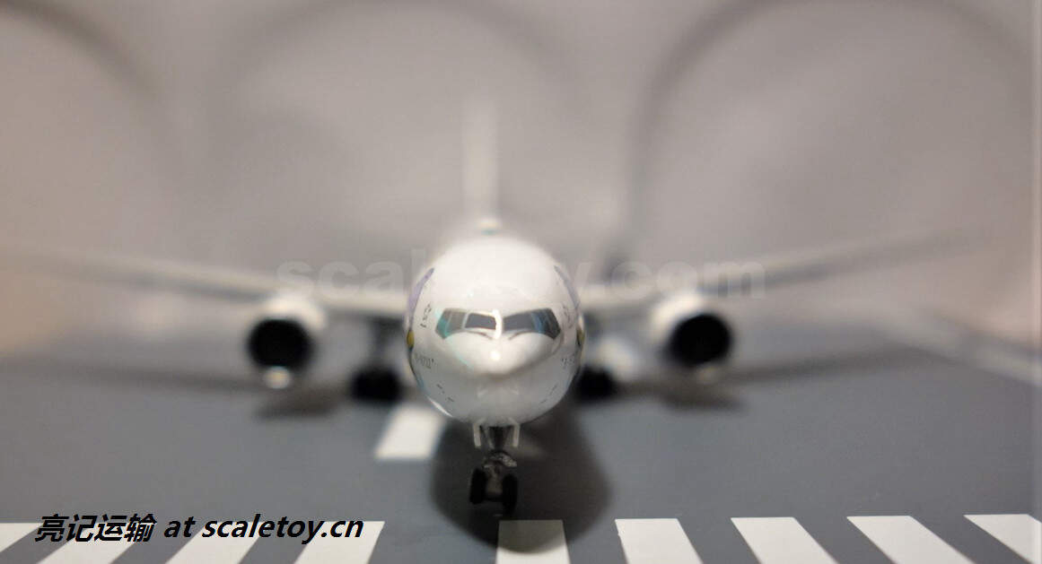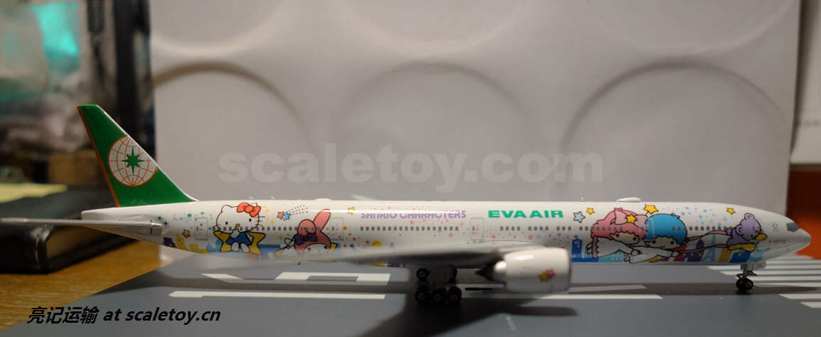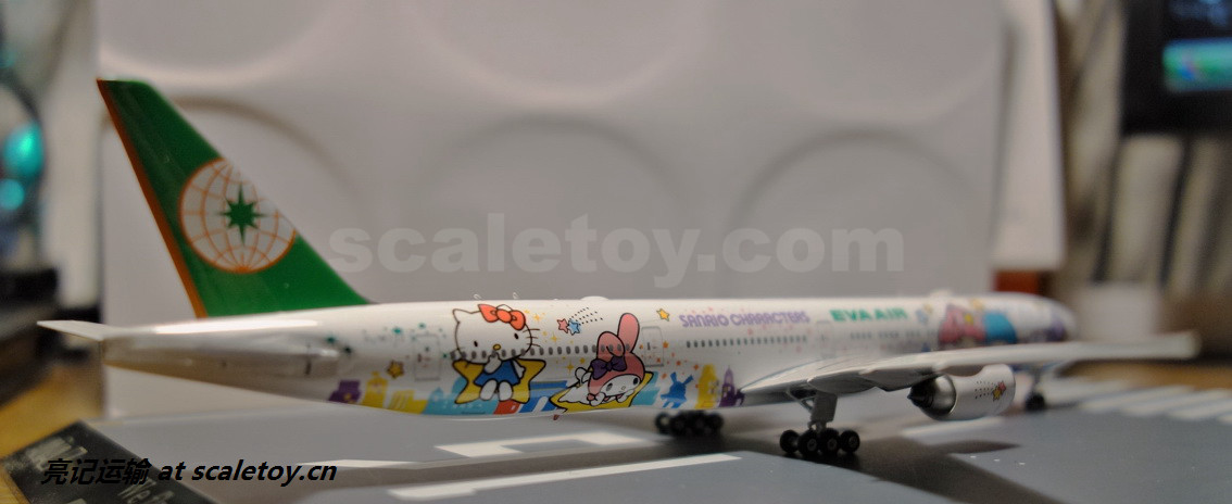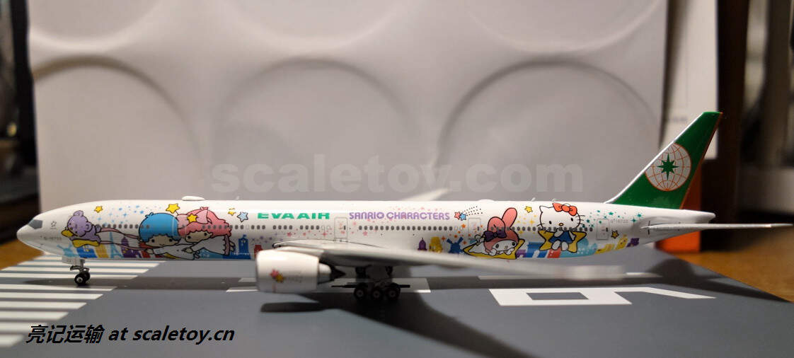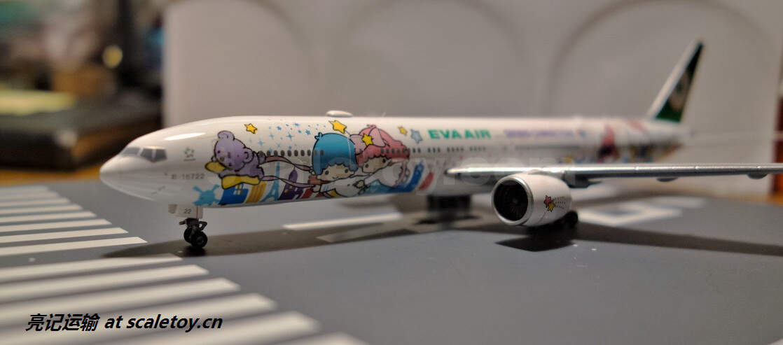 长荣航空最吸引就是Hello Kitty彩绘机,还有不少彩绘主题,认识长荣的就是从 Hello Kitty 彩绘机认识的,飞机注册号:B-16722 这次拍的起码都讲究一点,加个白的泡沫做背景,下面都好歹放一块模拟机场跑道的版下去,不至于看上去那么简陋。