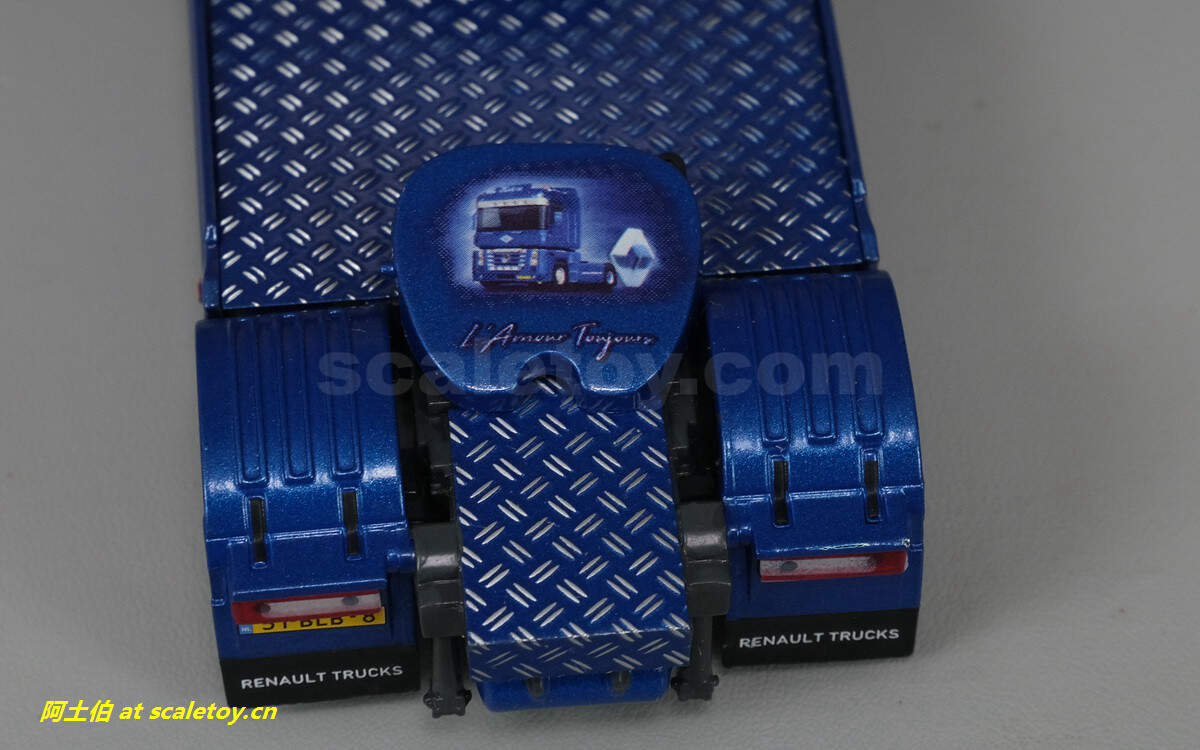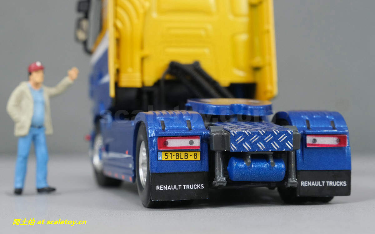 尾部车灯车牌等细节,挡泥板上文字为雷诺卡车。