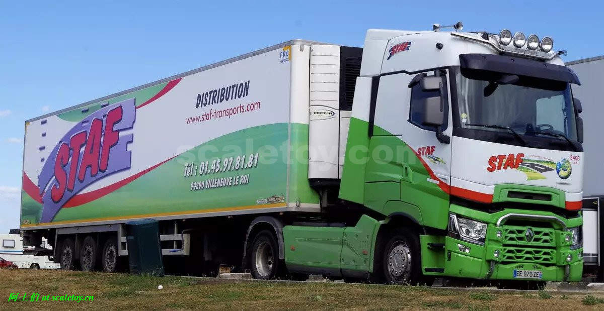 [WSI] RENAULT TRUCKS T HIGH 4X2 with 3X REEFER TRAILER – STAF 雷诺拖头挂冷藏车 法国STAF公司涂装