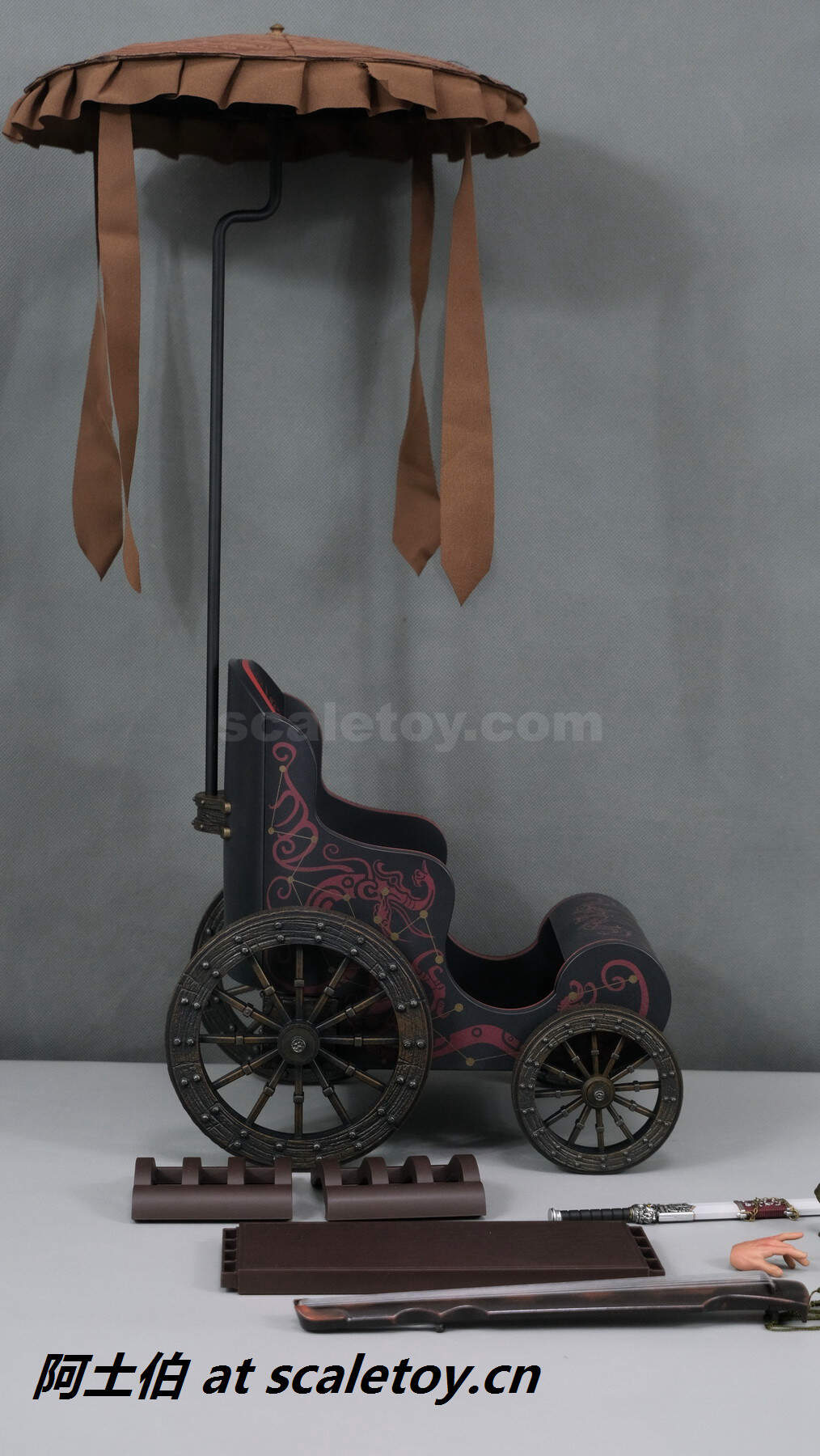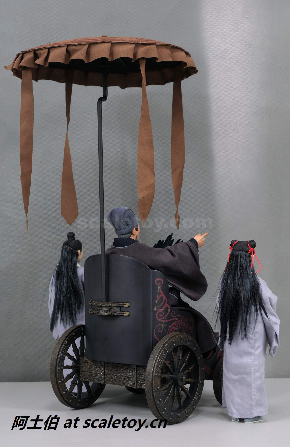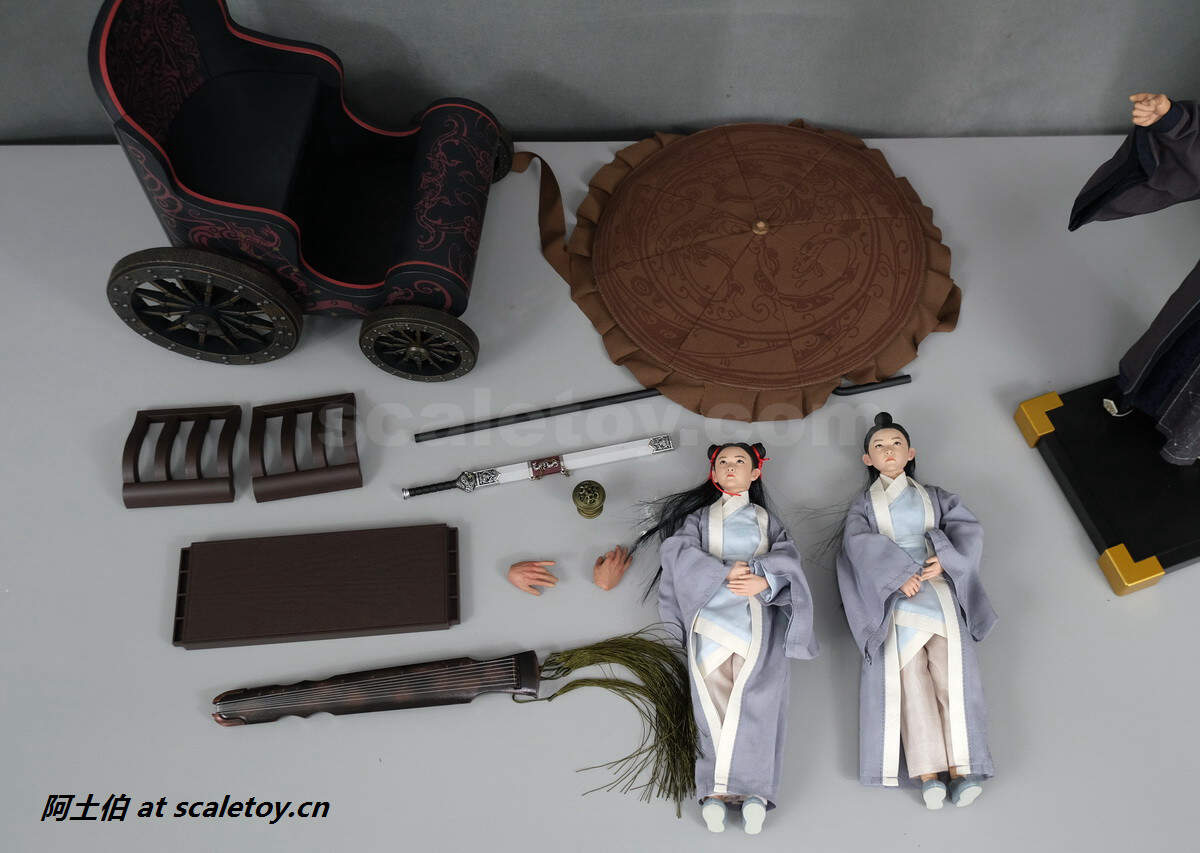 里面分了三层,是四轮车主体,以及空城计的小童和古琴