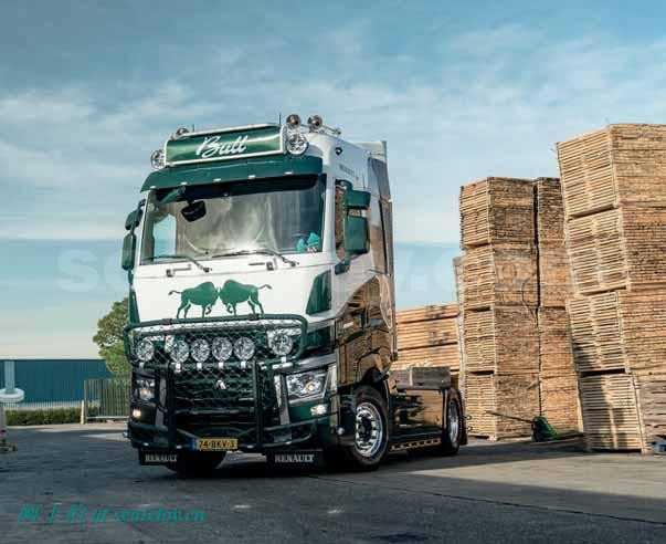 今天介绍的是该公司涂装的一台雷诺T系列高顶4X2拖头