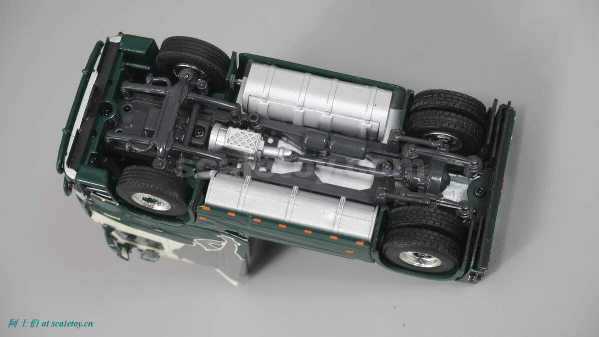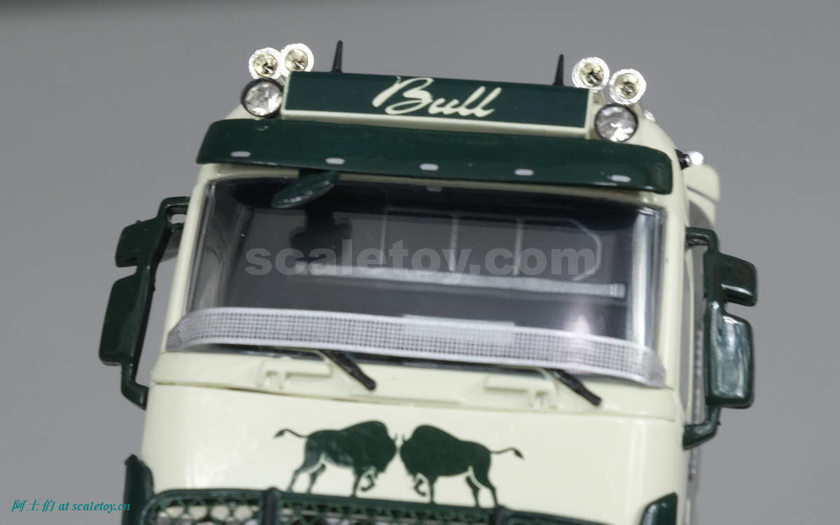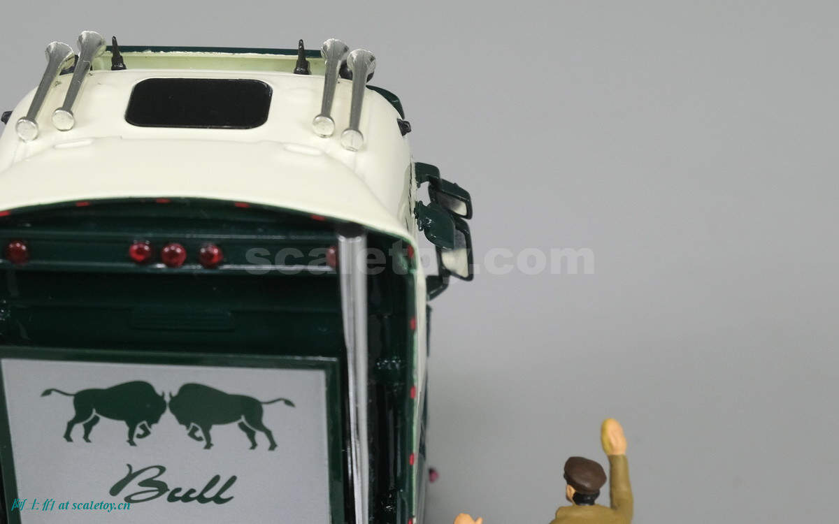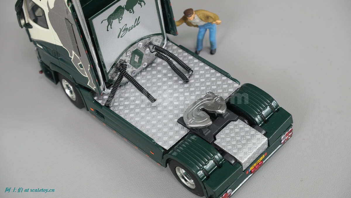 驾驶室背后两个粗大的金属排气管分列两侧,增加了不少霸气。上方有独立构件的红色小灯。