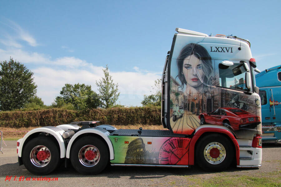Nicolas Soudet对于法拉利有着强烈的爱好,因此在他自己的650马力的V8拖头上,他采用了法拉利彩绘;并且在驾驶室背后涂上了自己儿子Enzo的8岁照片。