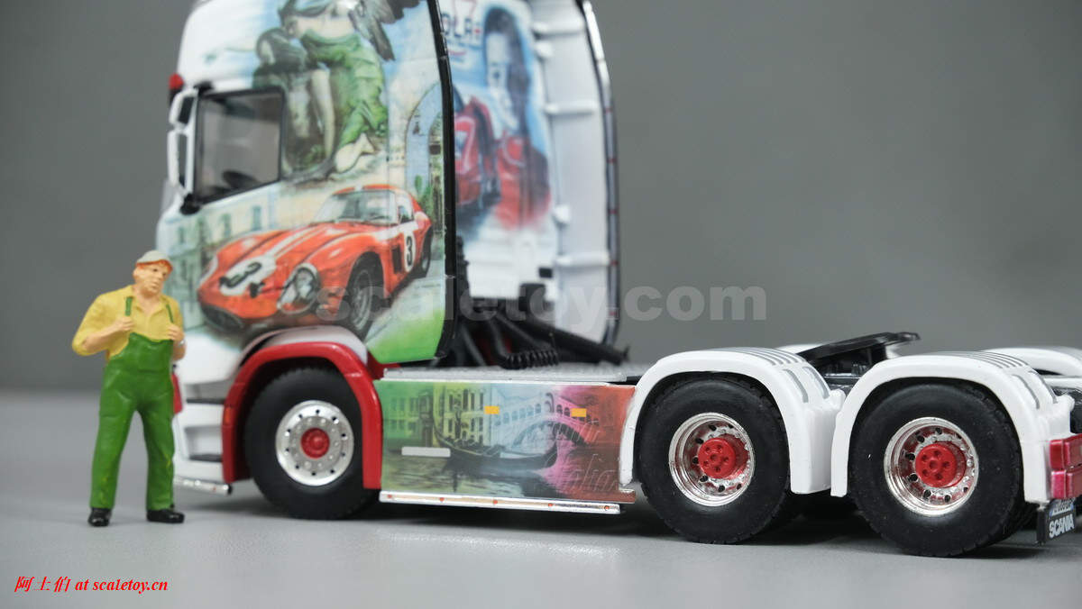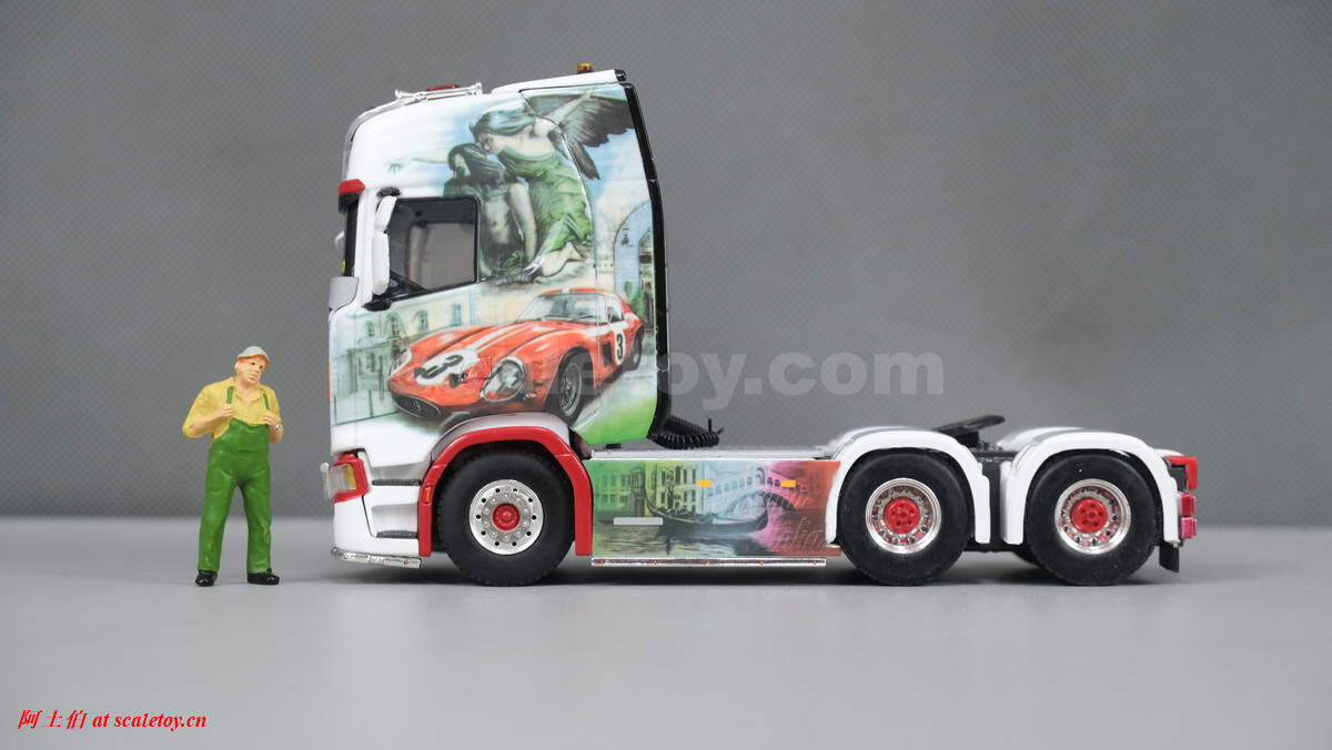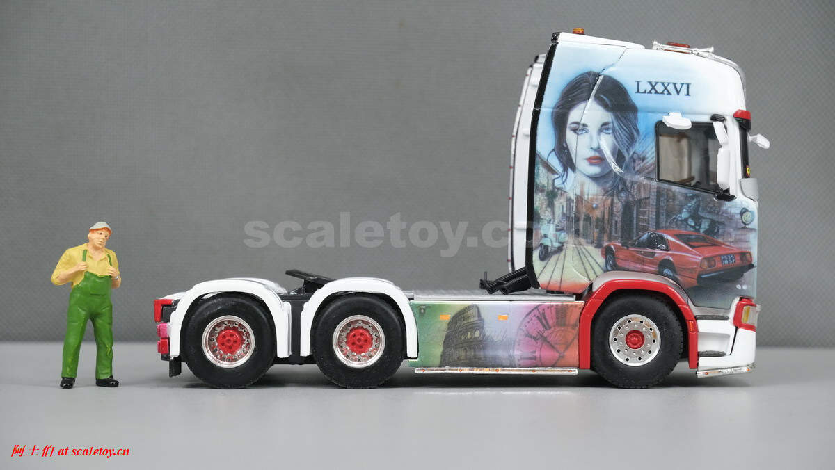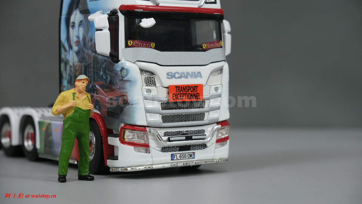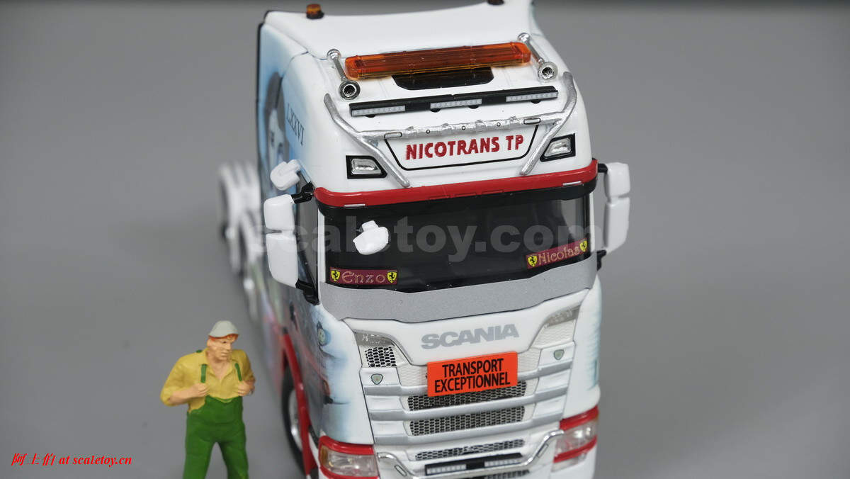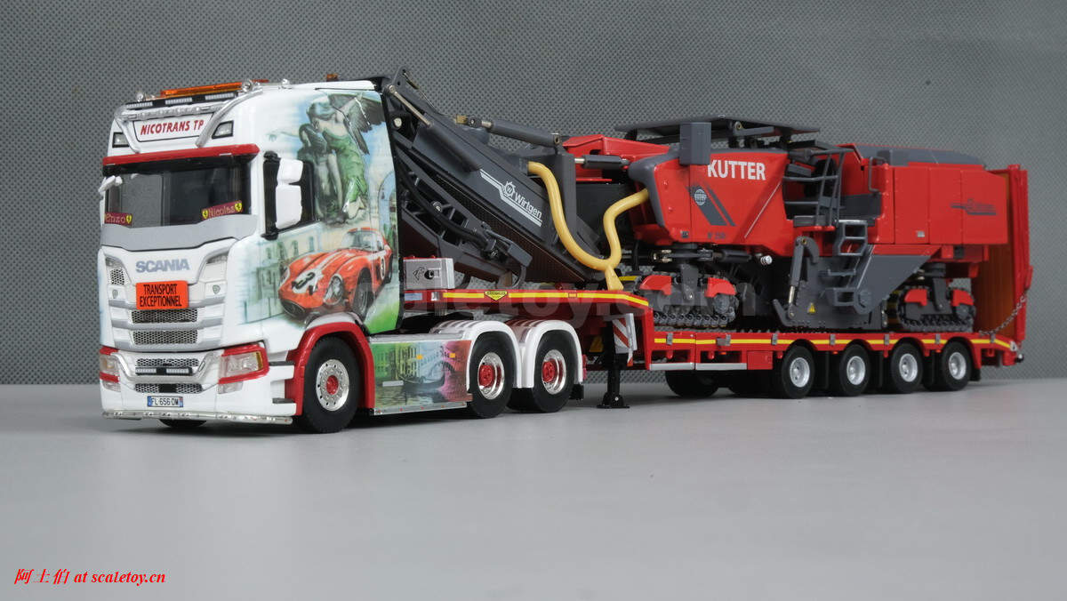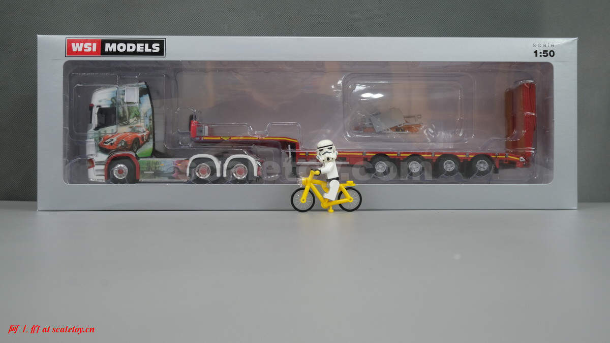 WSI将这台SCANIA S HIGHLINE CS20H 6X4挂BROSHUIS四轴可延伸半低板制作了模型,编号01-3619,比例1/50: