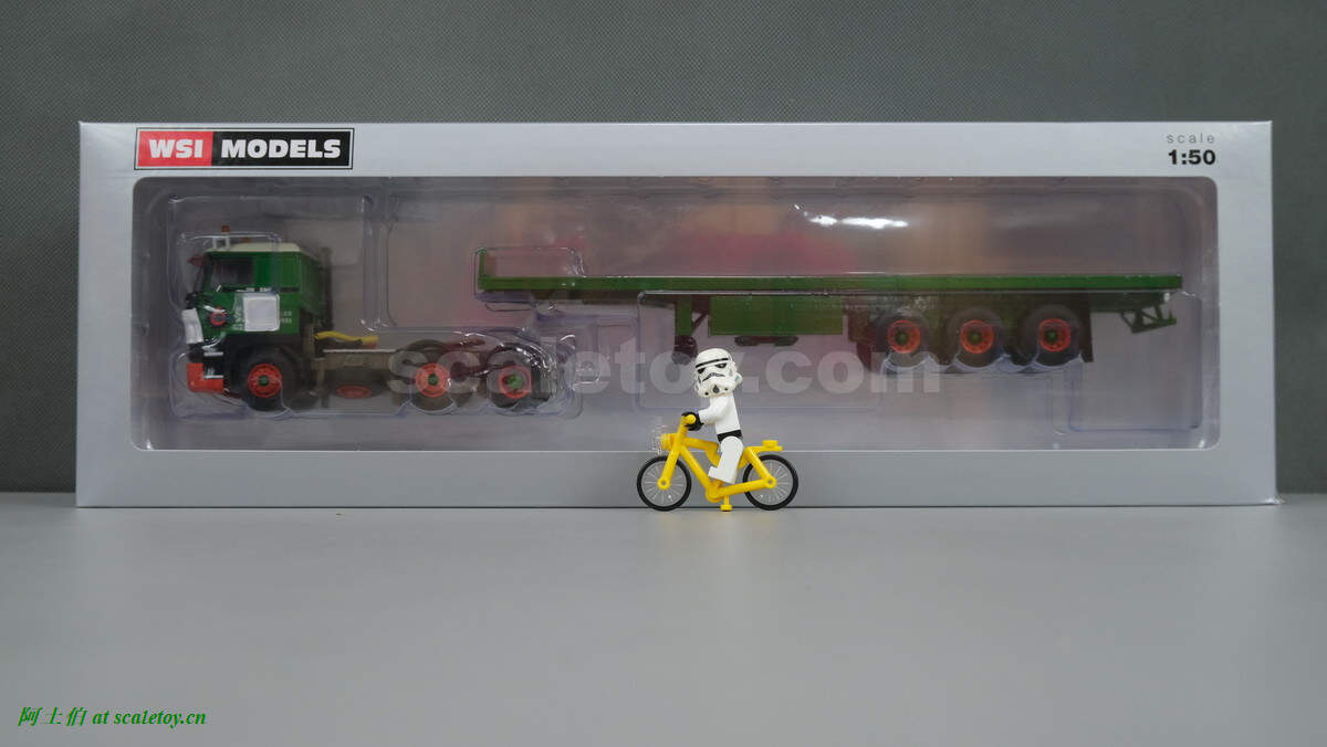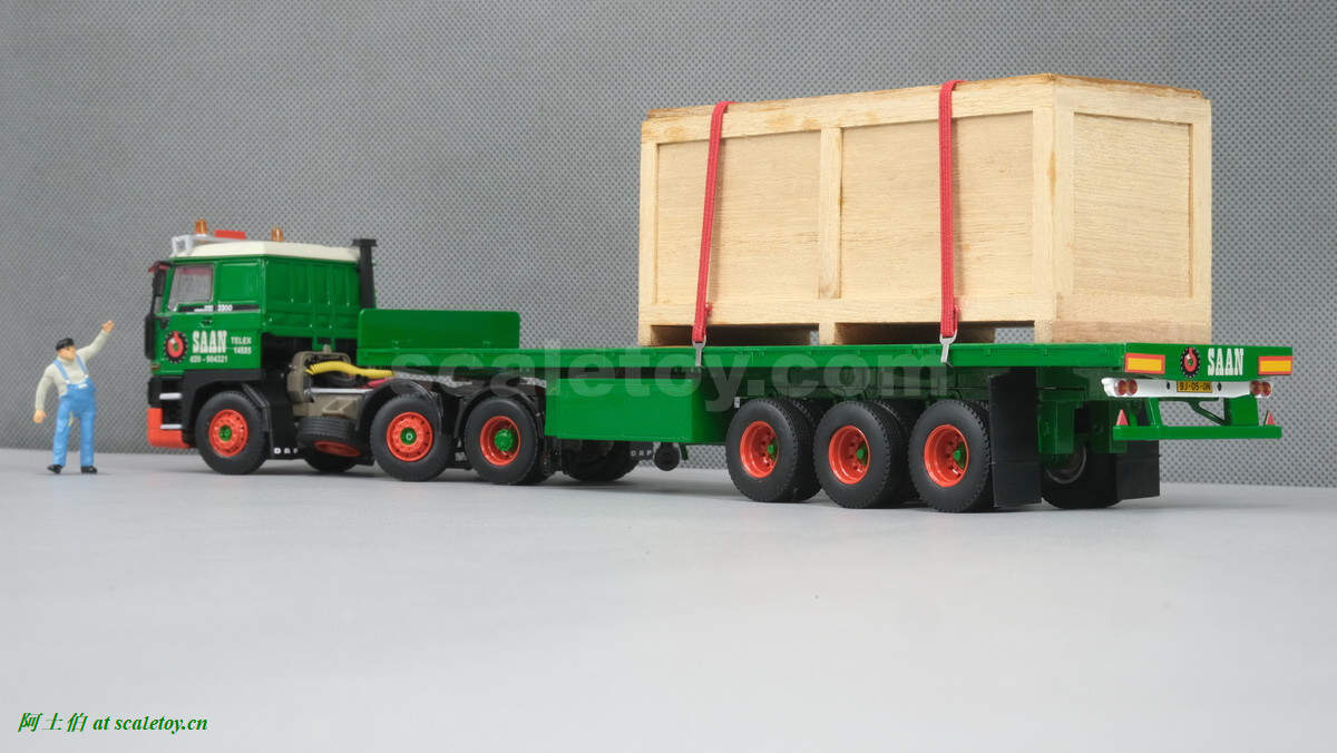 不过实际模型的挂车和图片不一样,是三轴平板。模型编号01-3564,比例1/50