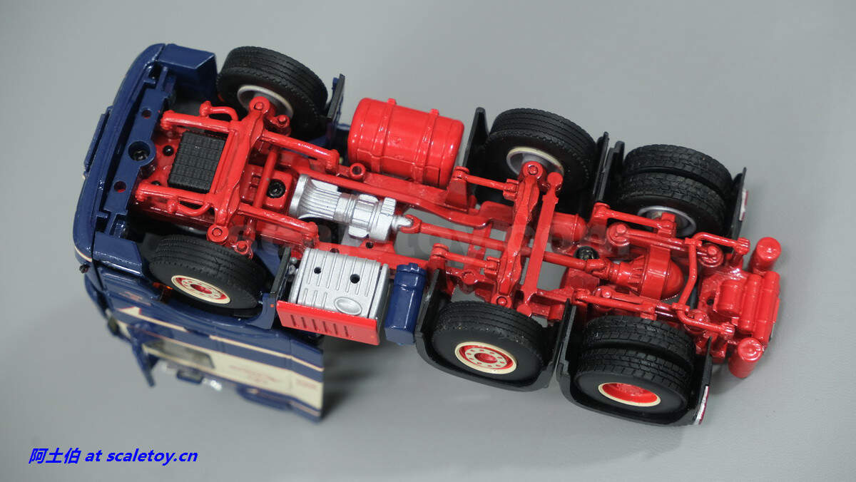 发动机和底盘,底盘前两轴转向联动,第三轴驱动。