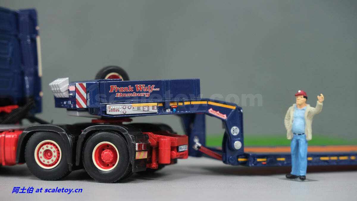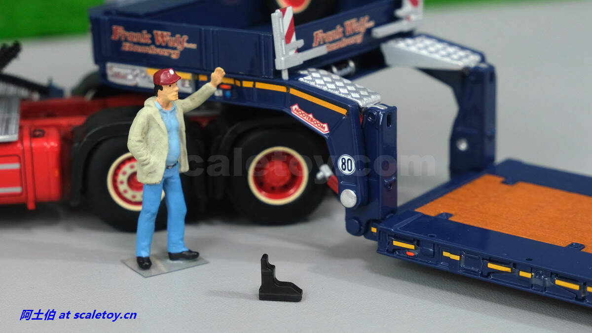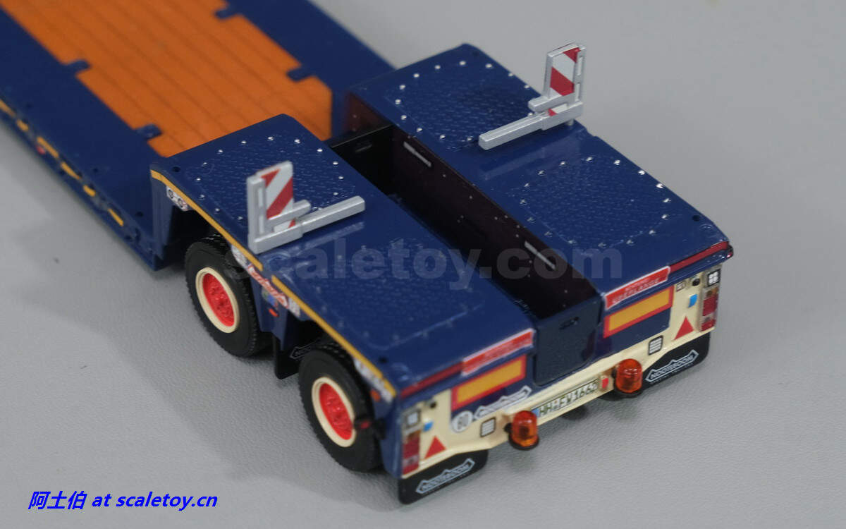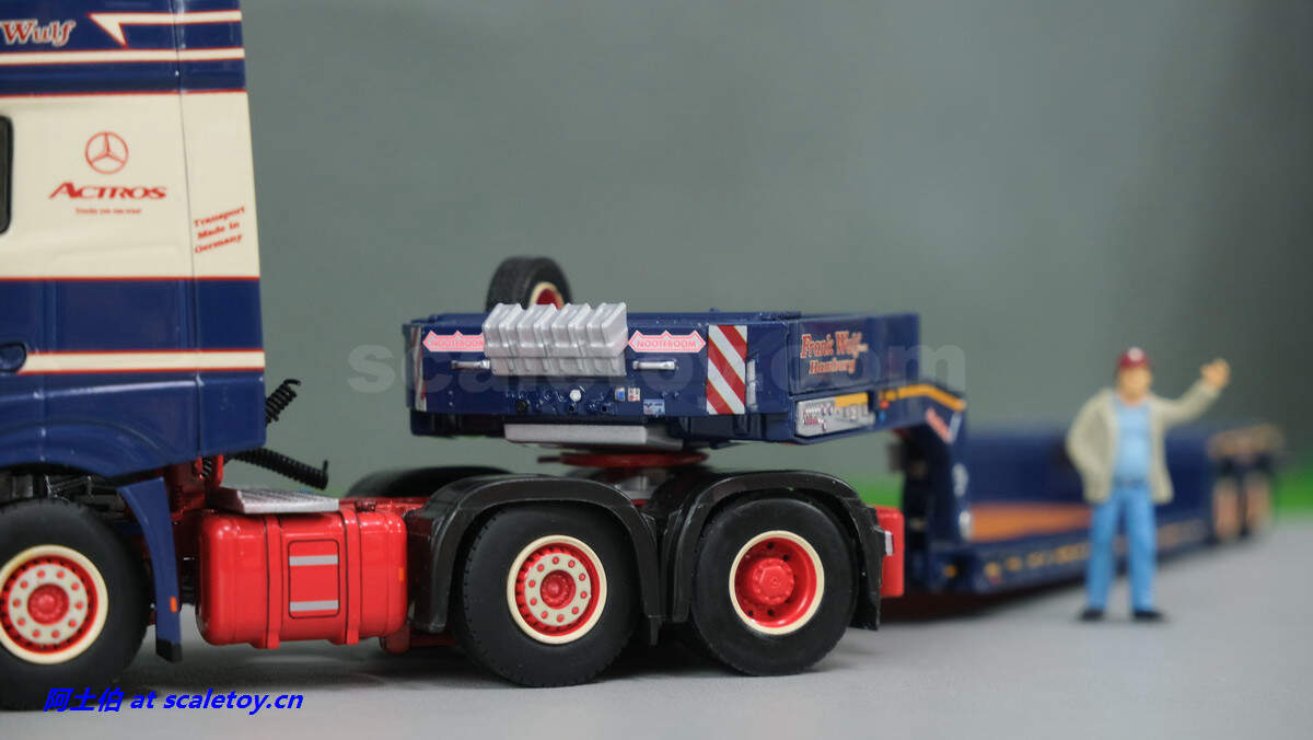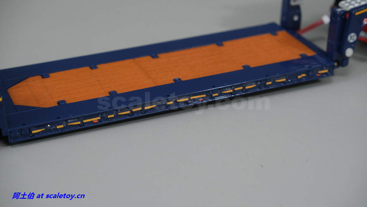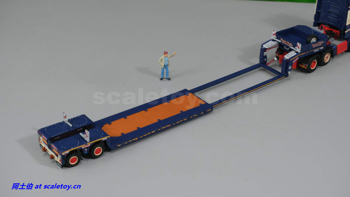 现在看拖板。拖板是NOOTEBOOM的EURO-PX系列,也是NOOTEBOOM最新一代专利的低板产品,特点包括更深更宽的挖掘机槽、更高的每轴载荷。可搭配不同规格的鹅颈或中间连接轴。