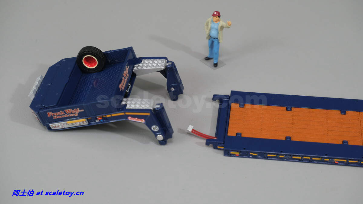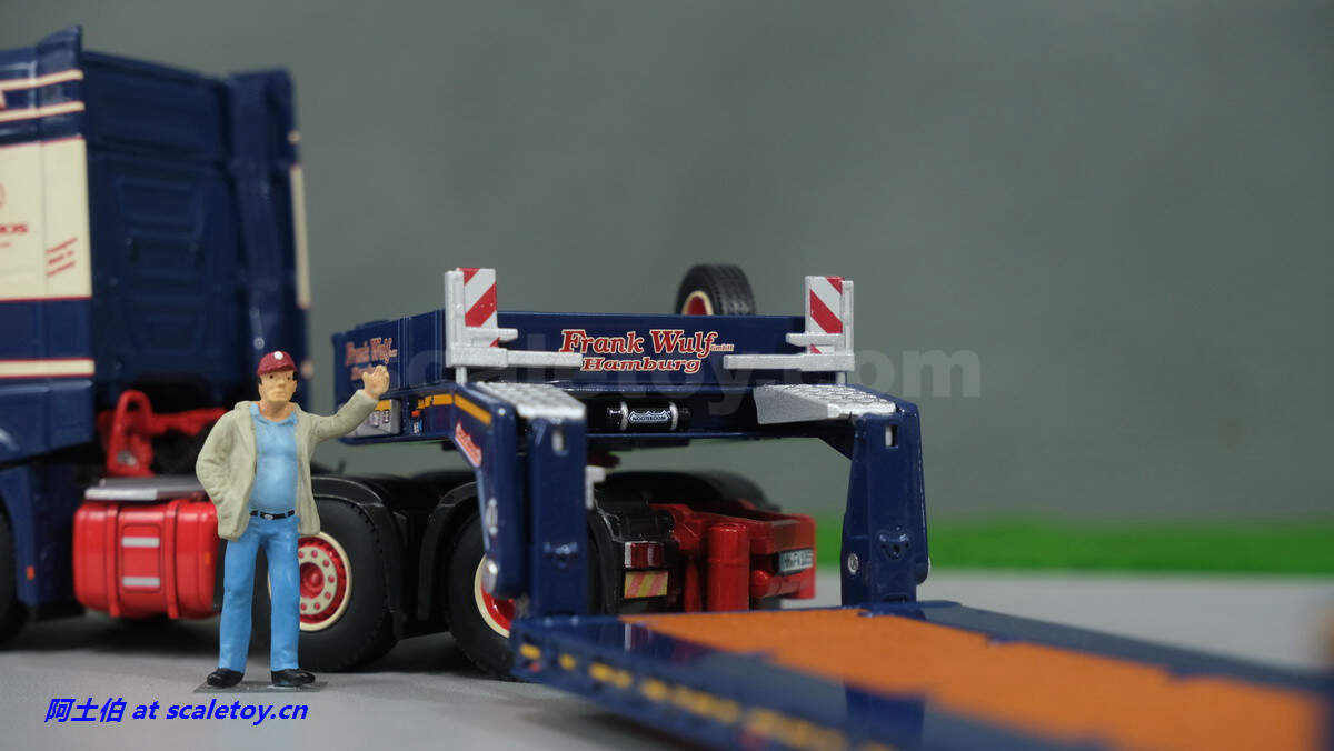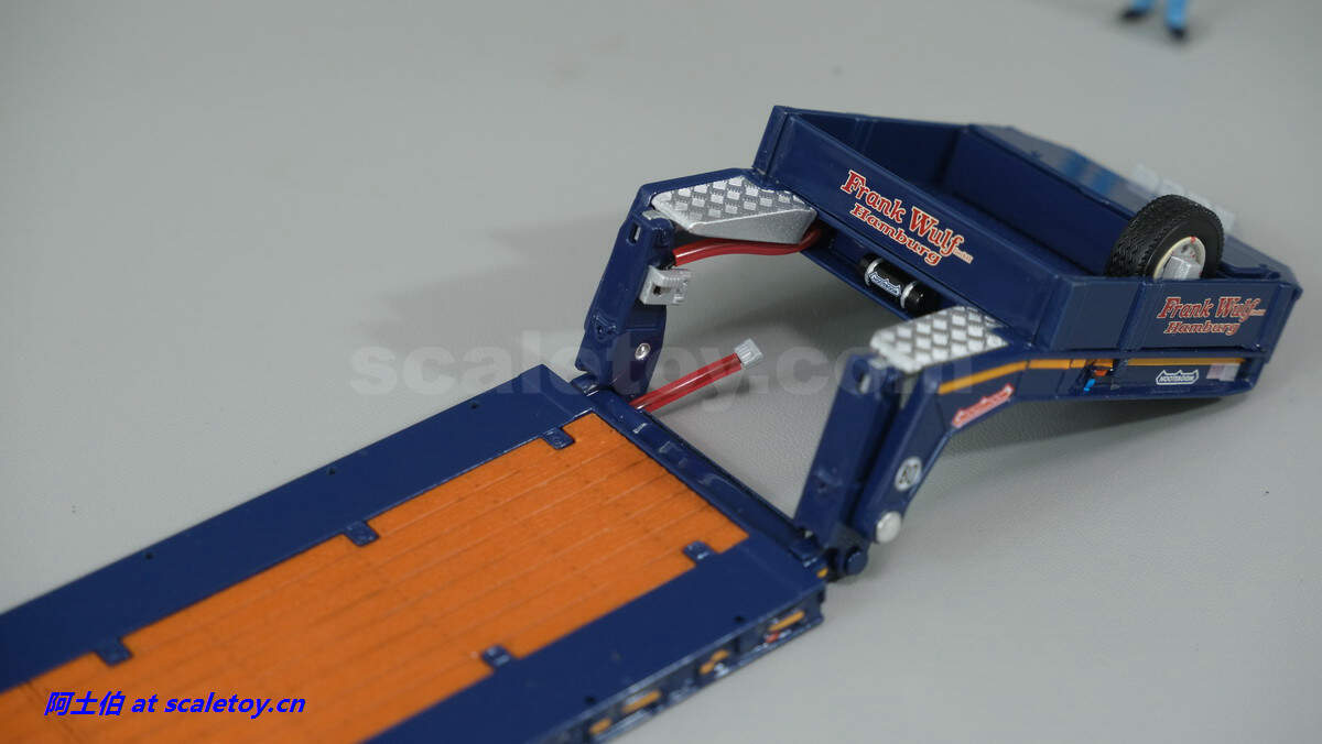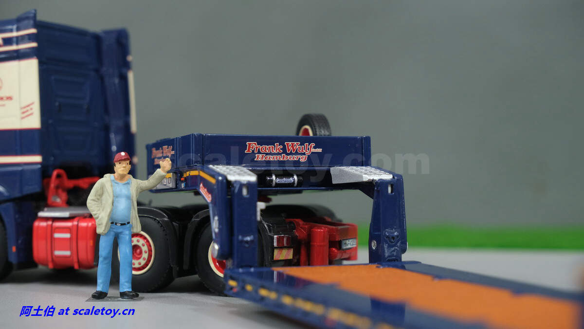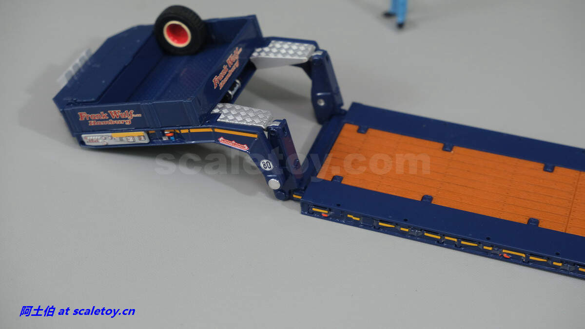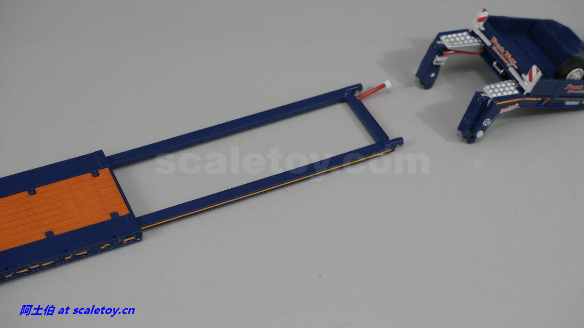 现在看拖板。拖板是NOOTEBOOM的EURO-PX系列,也是NOOTEBOOM最新一代专利的低板产品,特点包括更深更宽的挖掘机槽、更高的每轴载荷。可搭配不同规格的鹅颈或中间连接轴。