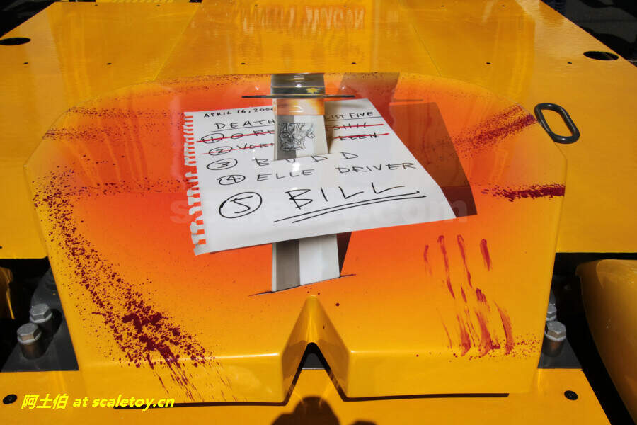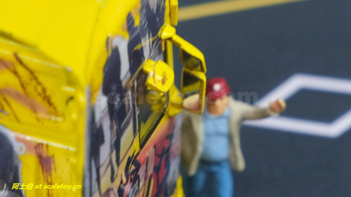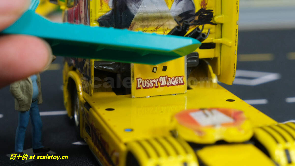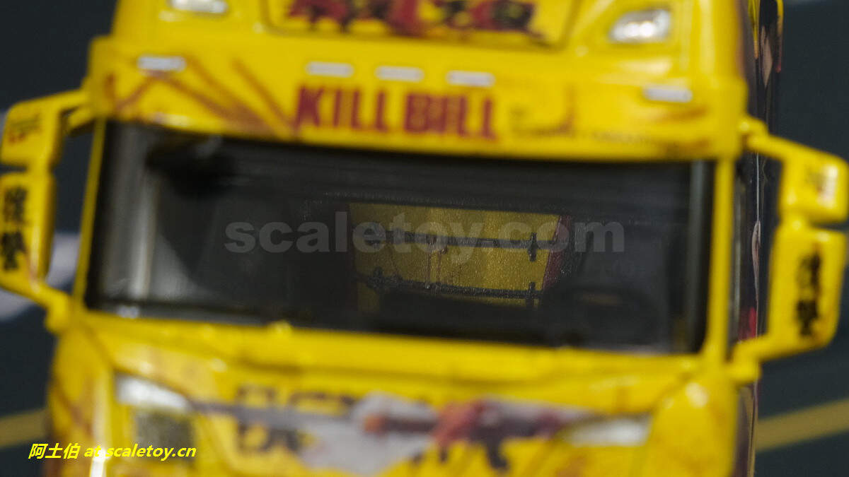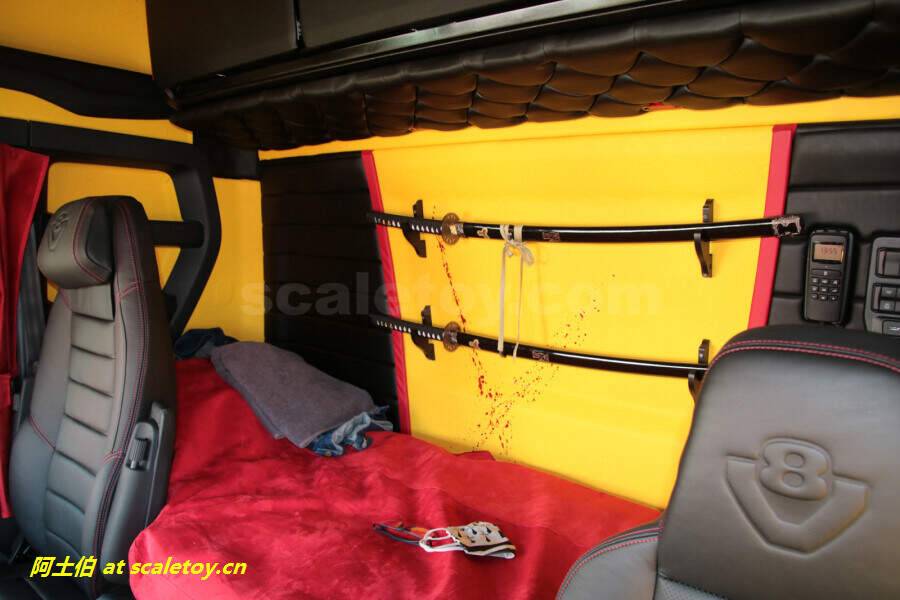 仔细看内部也按照原车做了一些分色和图案,例如后部墙面上两把刀等。