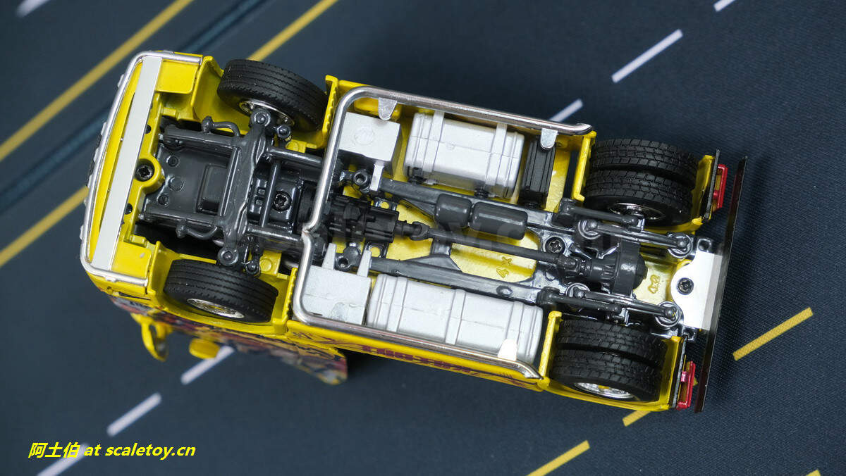 拖挂部位全部覆盖了金属光面板,实车一定更加炫酷。第五轴盖板上的图案也是细致入微