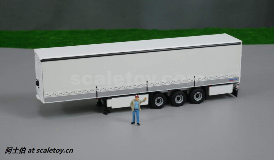 今天介绍的侧帘挂车就来自Schmitz Cargobull,模型由WSI制作,编号03-1073,比例1/50。模型为白色涂装,属于WSI的white line系列。