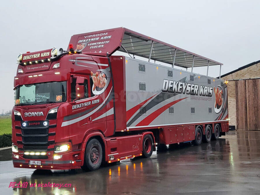[WSI] SCANIA S HIGHLINE CS20H 4X2 with 3x LIVE STOCK TRAILER – DEKEYSER KRIS 斯堪尼亚拖头挂运猪车 比利时DEKEYSER KRIS公司涂装