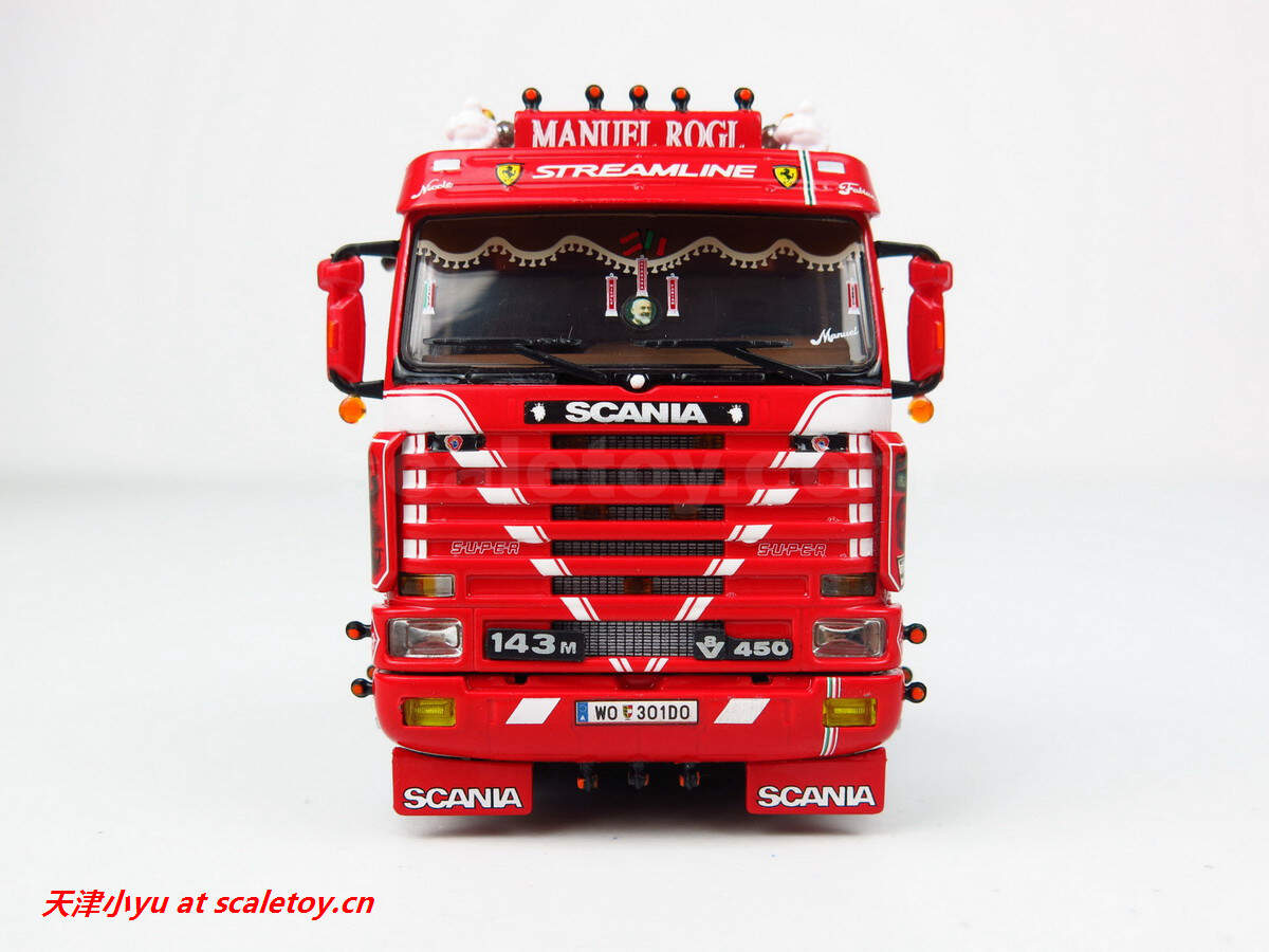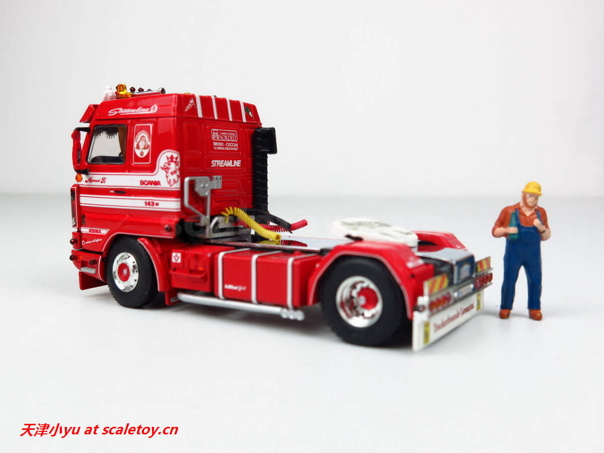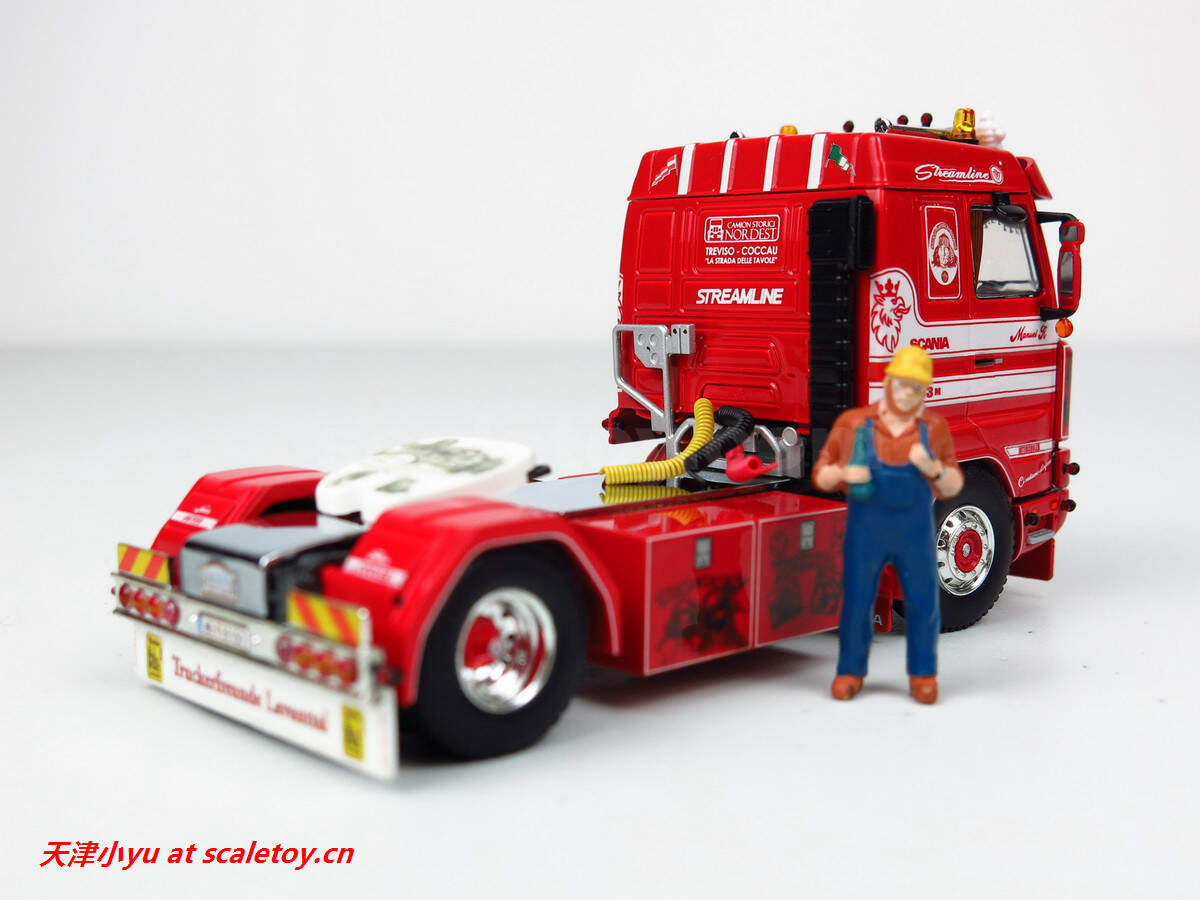 拖头 tractor[wsi]SCANIA 3 SERIES STREAMLINE 4X2 (MANUEL ROGL涂装) 作者 天津小yu 2022年10月17日 1 分钟阅读 0 从网上找不到关于这个涂装的太多信息,估计是个不太知名的小公司 车型一直是我很喜欢的scania 143,方方正正的造型 涂装很漂亮,红底配白色拉花 模型的还原度很高 前档上也印刷了装饰物 下部的车牌照印刷也很清晰,但是不明白下部的小灯为什么是横着的,对比了下实车,也确实是横着的 上部的米其林和各种小灯 45度角 尾部细节是要表扬一下的,镀铬件很亮且没有划痕,车灯处理的很到位,有晶莹剔透的感觉 鞍座配有装饰盖,但是很松 标签: MANUEL ROGLSCANIAWSI