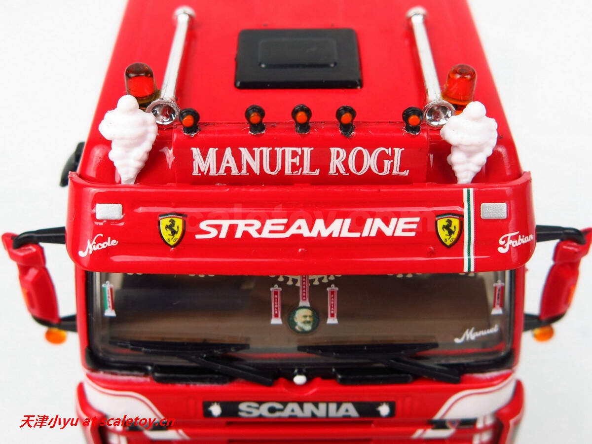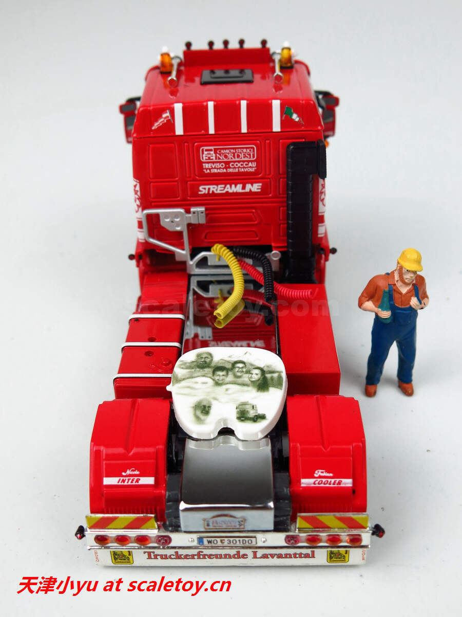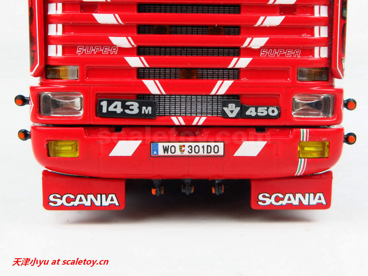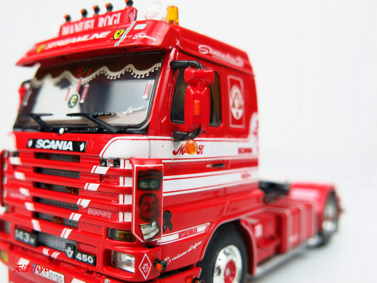 拖头 tractor[wsi]SCANIA 3 SERIES STREAMLINE 4X2 (MANUEL ROGL涂装) 作者 天津小yu 2022年10月17日 1 分钟阅读 0 从网上找不到关于这个涂装的太多信息,估计是个不太知名的小公司 车型一直是我很喜欢的scania 143,方方正正的造型 涂装很漂亮,红底配白色拉花 模型的还原度很高 前档上也印刷了装饰物 下部的车牌照印刷也很清晰,但是不明白下部的小灯为什么是横着的,对比了下实车,也确实是横着的 上部的米其林和各种小灯 45度角 尾部细节是要表扬一下的,镀铬件很亮且没有划痕,车灯处理的很到位,有晶莹剔透的感觉 鞍座配有装饰盖,但是很松 标签: MANUEL ROGLSCANIAWSI