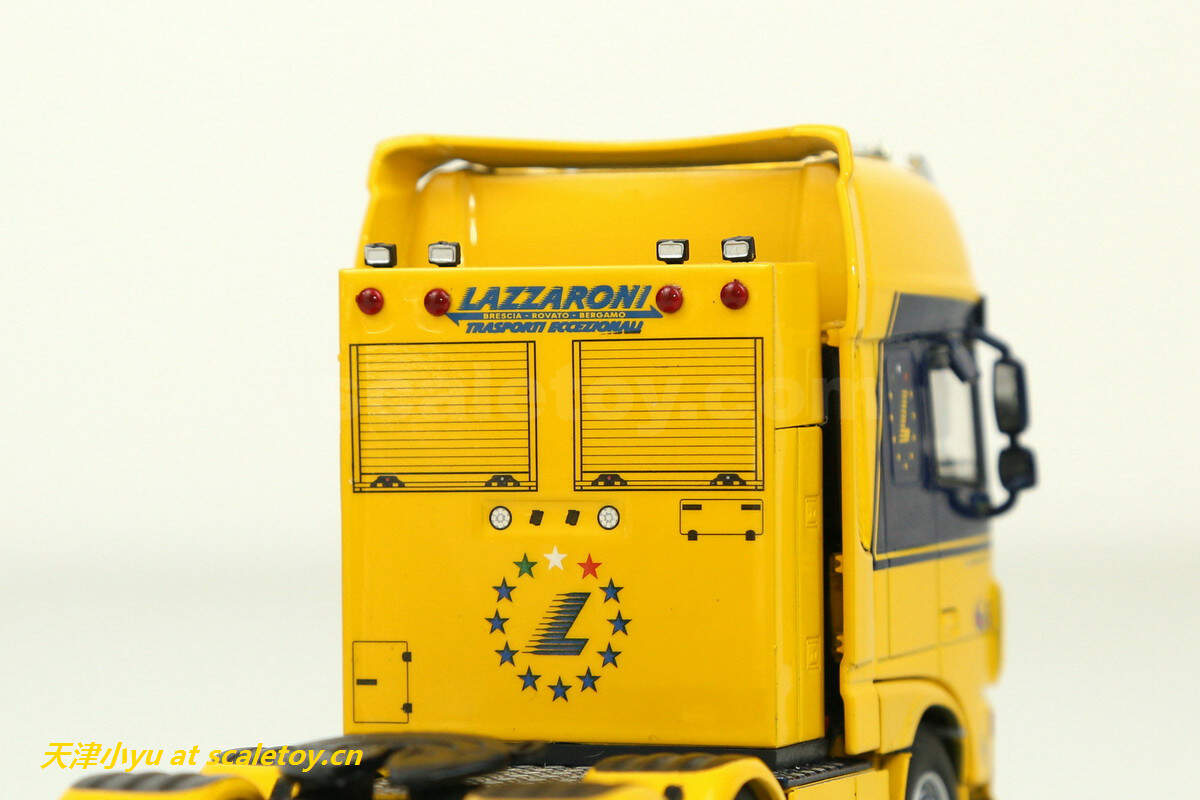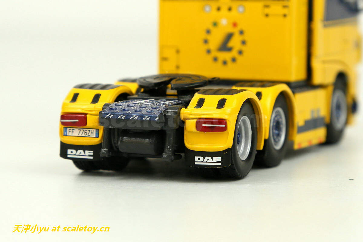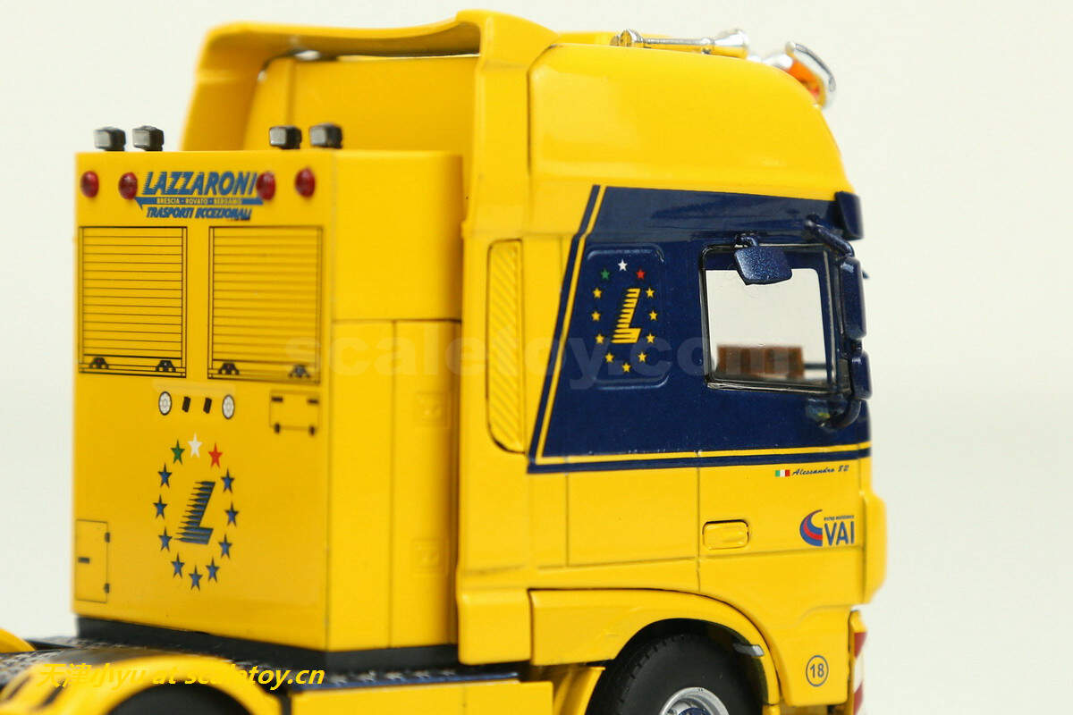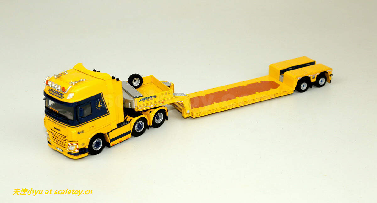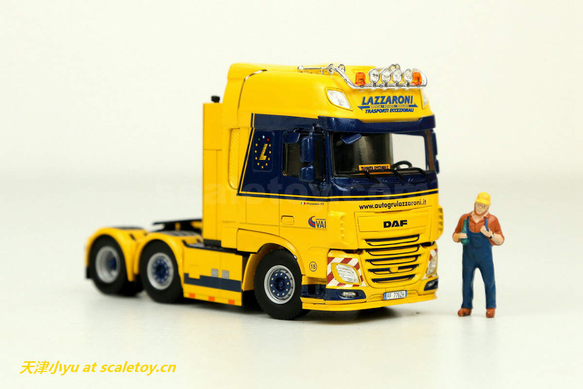 拖板 trailer[wsi] DAF XF SUPER SPACE CAB 6X2 TWINSTEER WITH NOOTEBOOM EURO LOWLOADER 2 AXLE(LAZZARONI涂装) 作者 天津小yu 2022年12月21日 1 分钟阅读 0 这次介绍的车来自意大利的一家运输公司,公司主要从事车辆救援、厂房设备吊装及货物运输等业务,公司网址:https://autogrulazzaroni.it/ 看实车 涂装主体呈黄色, 模型来自wsi,黄色打底,配金属蓝色点缀 车头时DAF的新款驾驶室 车头整体感官上比较厚实 车灯细节 尾部特写 驾驶室后部的工具箱,大部分细节是印刷处理的 下面是拖板 传统的NOOTEBOOM欧式低板,可以加长但是比较紧 鹅颈 前部工具箱可以打开 车尾的各种灯和警示标 车轮转向联动,但是角度不大 合体 整体还算比较紧致 标签: DAFLAZZARONINooteboomWSIXF