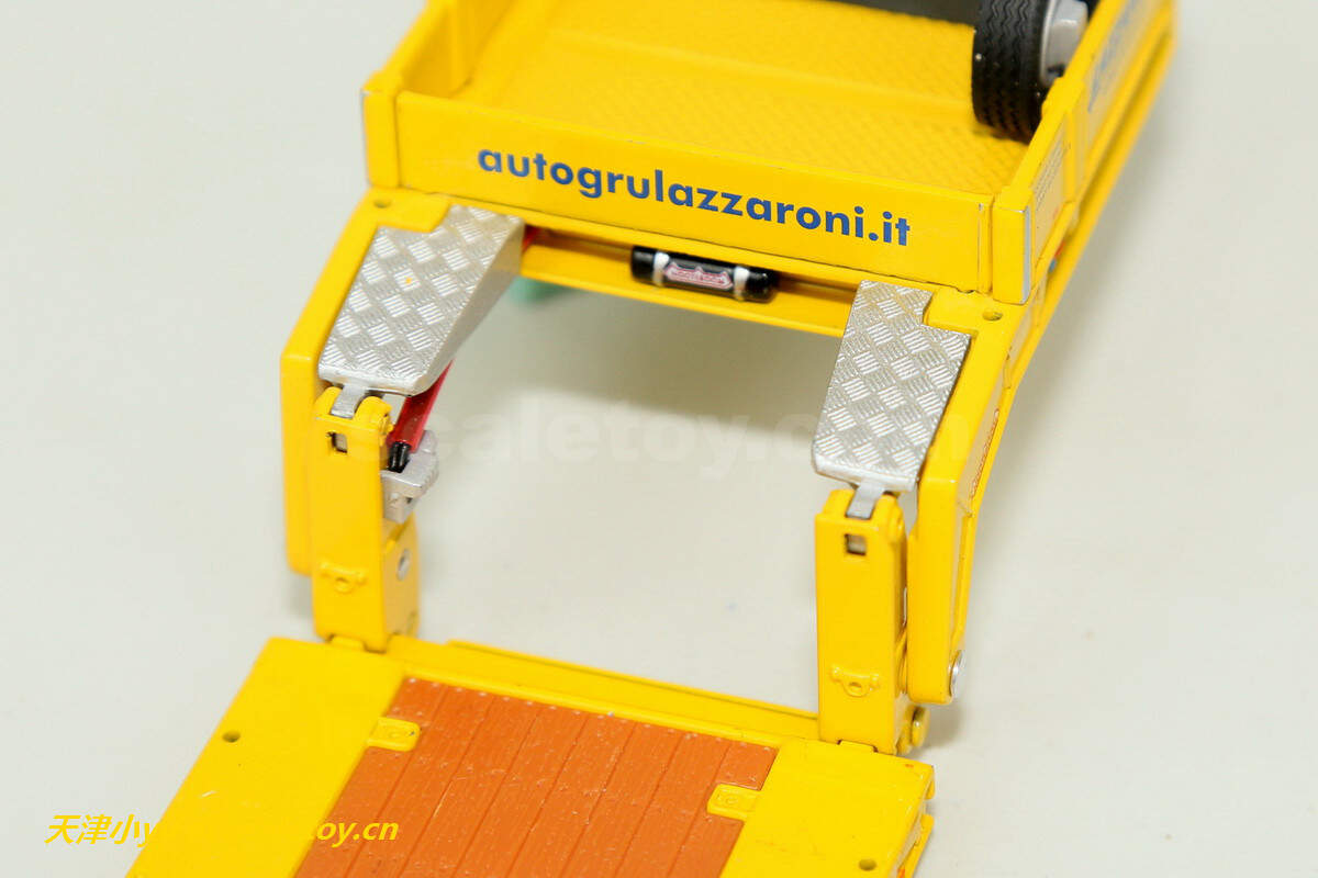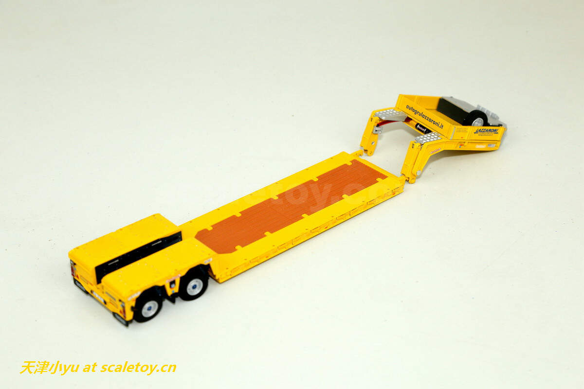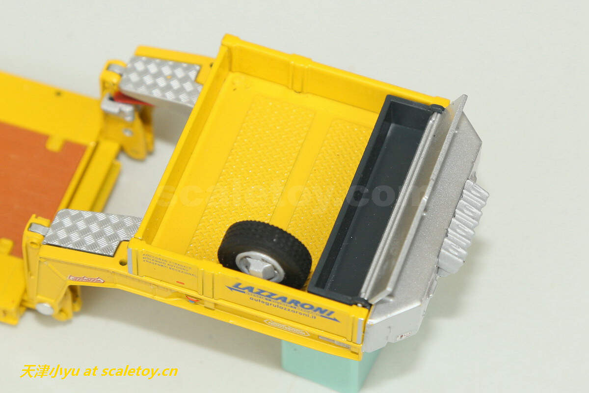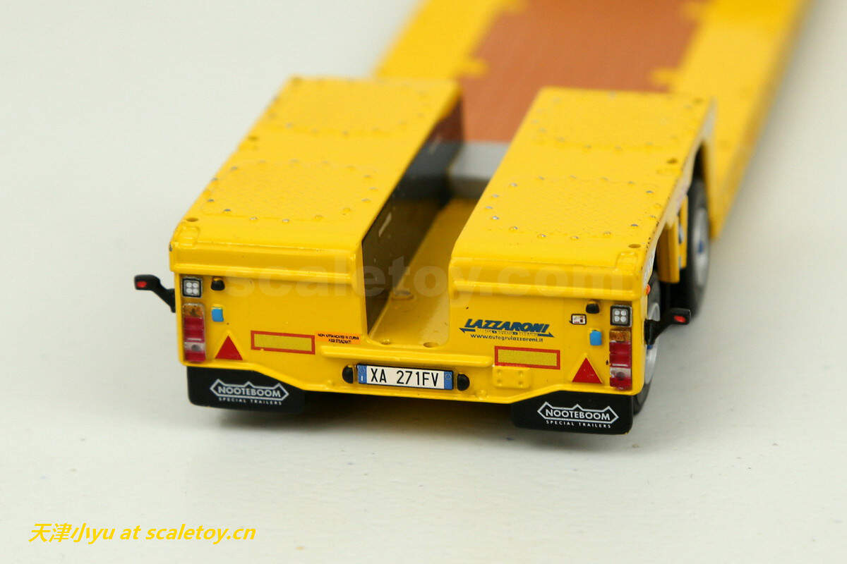 拖板 trailer[wsi] DAF XF SUPER SPACE CAB 6X2 TWINSTEER WITH NOOTEBOOM EURO LOWLOADER 2 AXLE(LAZZARONI涂装) 作者 天津小yu 2022年12月21日 1 分钟阅读 0 这次介绍的车来自意大利的一家运输公司,公司主要从事车辆救援、厂房设备吊装及货物运输等业务,公司网址:https://autogrulazzaroni.it/ 看实车 涂装主体呈黄色, 模型来自wsi,黄色打底,配金属蓝色点缀 车头时DAF的新款驾驶室 车头整体感官上比较厚实 车灯细节 尾部特写 驾驶室后部的工具箱,大部分细节是印刷处理的 下面是拖板 传统的NOOTEBOOM欧式低板,可以加长但是比较紧 鹅颈 前部工具箱可以打开 车尾的各种灯和警示标 车轮转向联动,但是角度不大 合体 整体还算比较紧致 标签: DAFLAZZARONINooteboomWSIXF