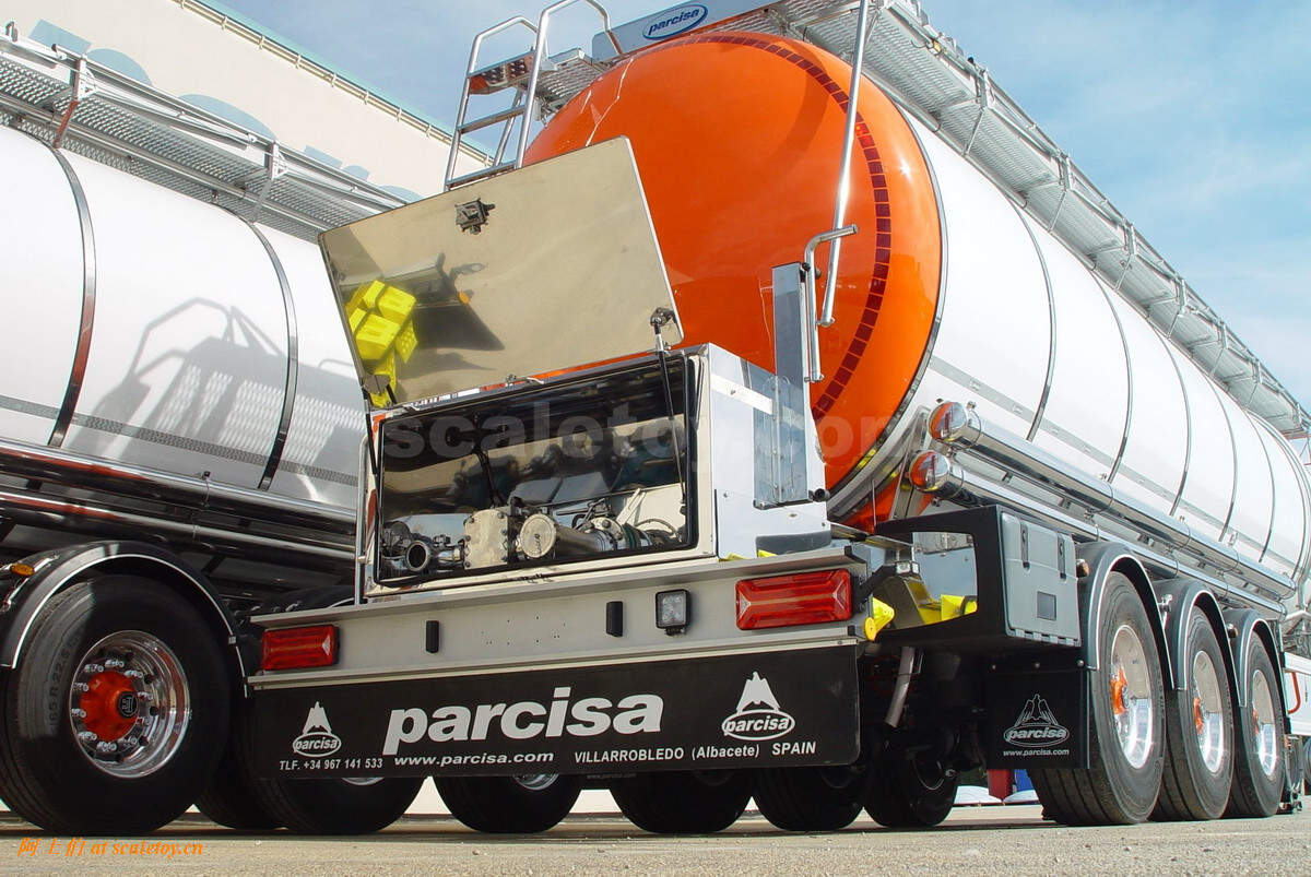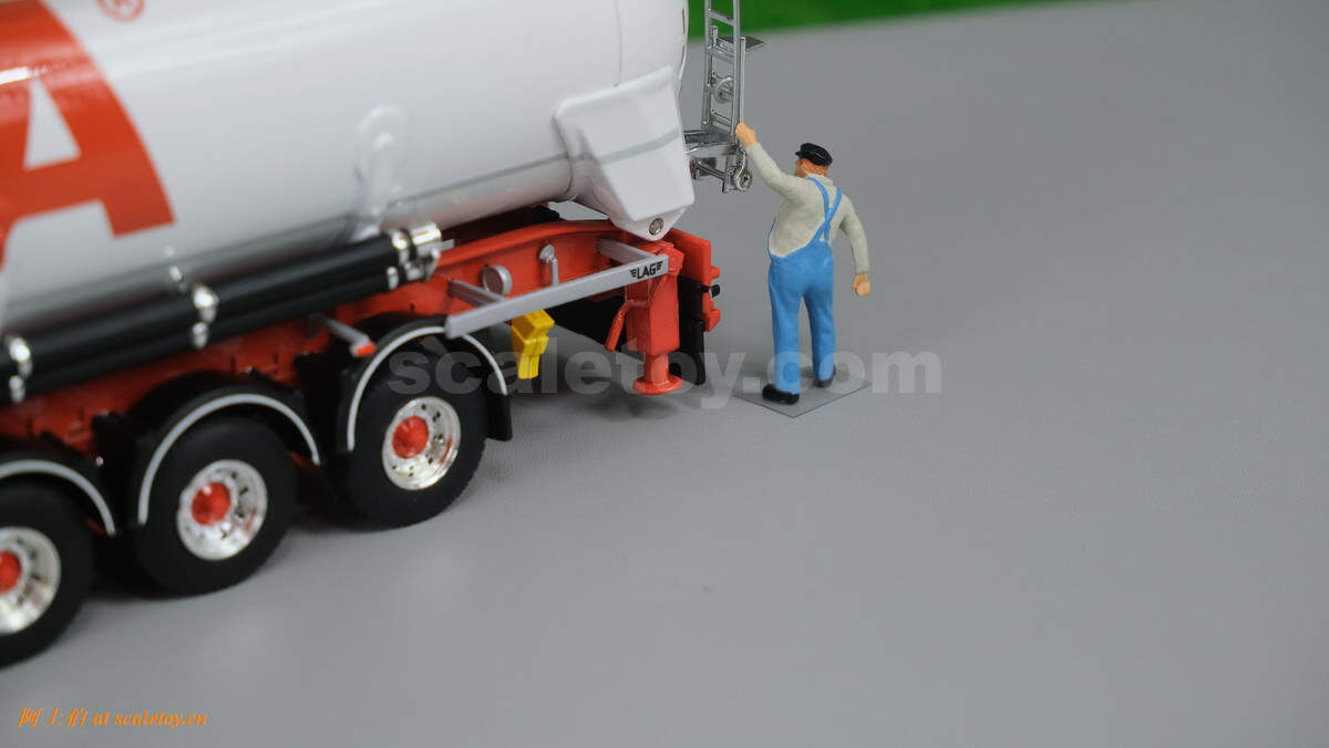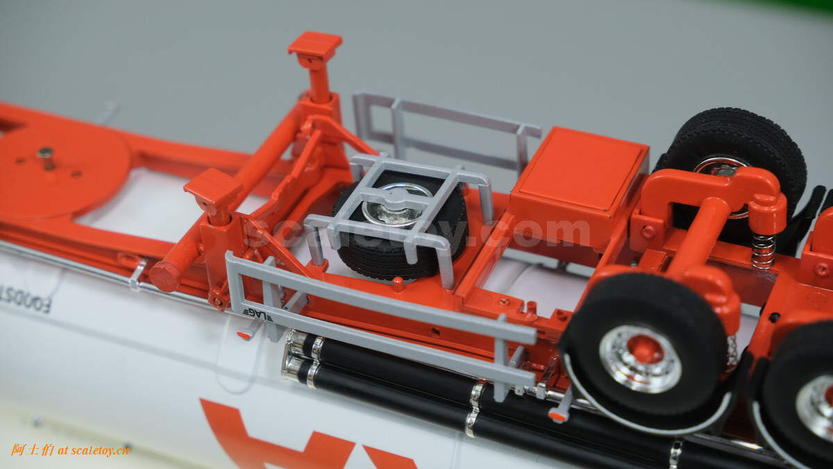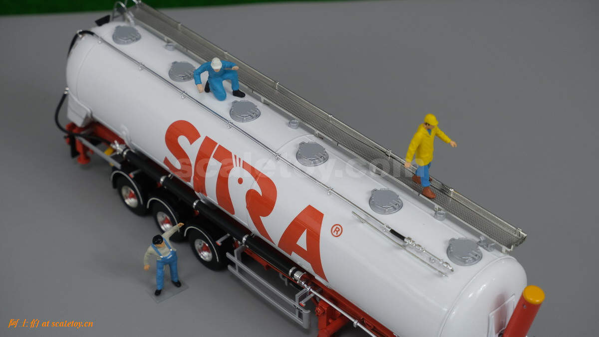 虽然也是反光银色左侧油箱,结构类似第一台拖头,但是看驾驶室顶部和背后,有差异,这款平顶没有扰流板、后面也没有侧裙板